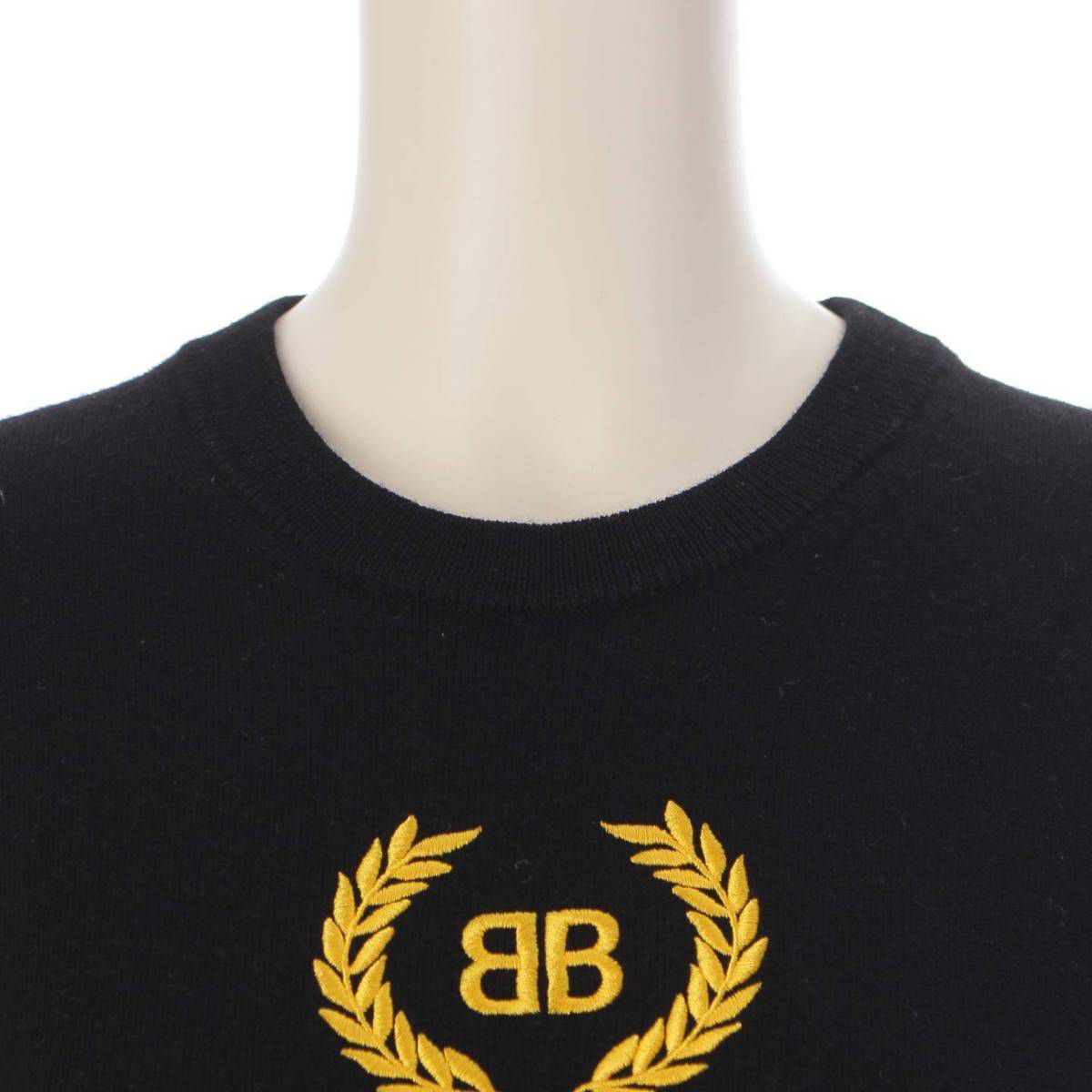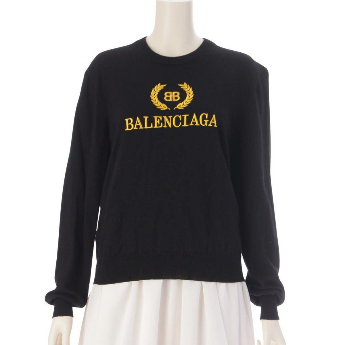 バレンシアガ ロゴ 刺繍 ウール ニット セーター トップス 長袖 ブラック M