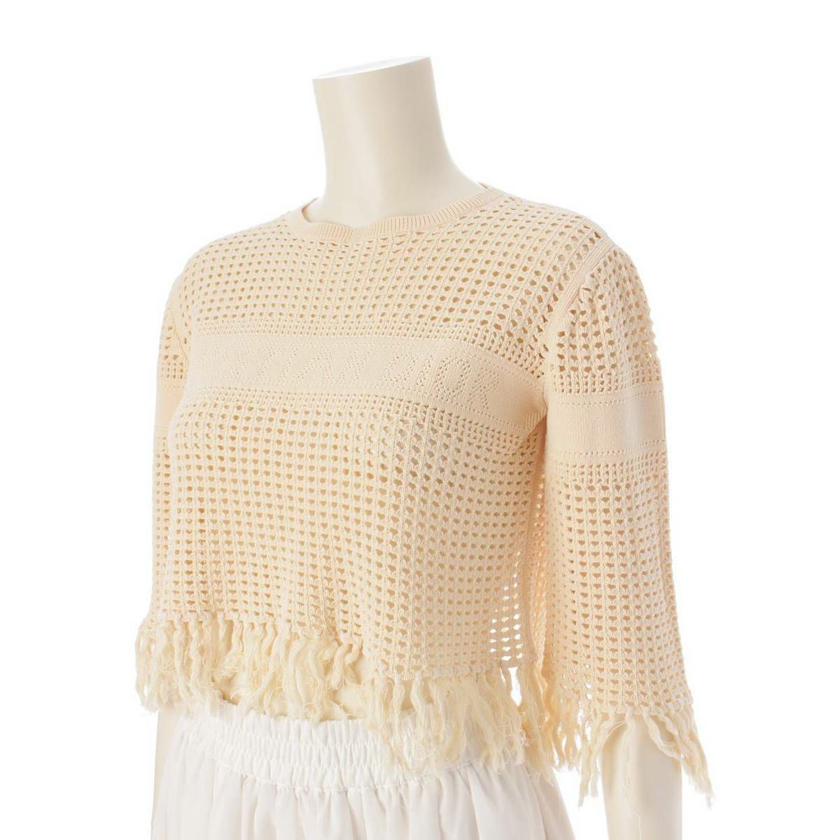 ディオール DIOR ロゴ フリンジ サマーニット トップス 114S42AM730 ベージュ 38