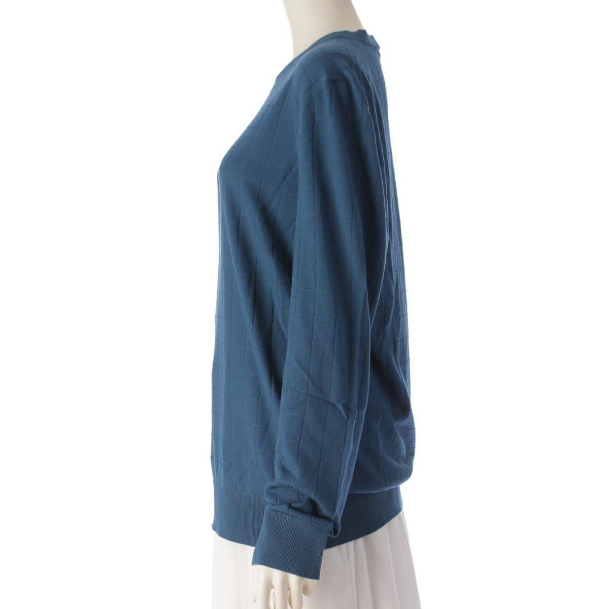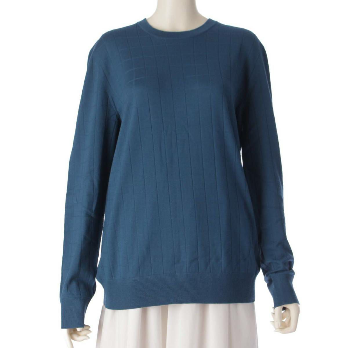 エルメス ウール 格子柄 長袖 クルーネック ニット セーター トップス ブルー L
