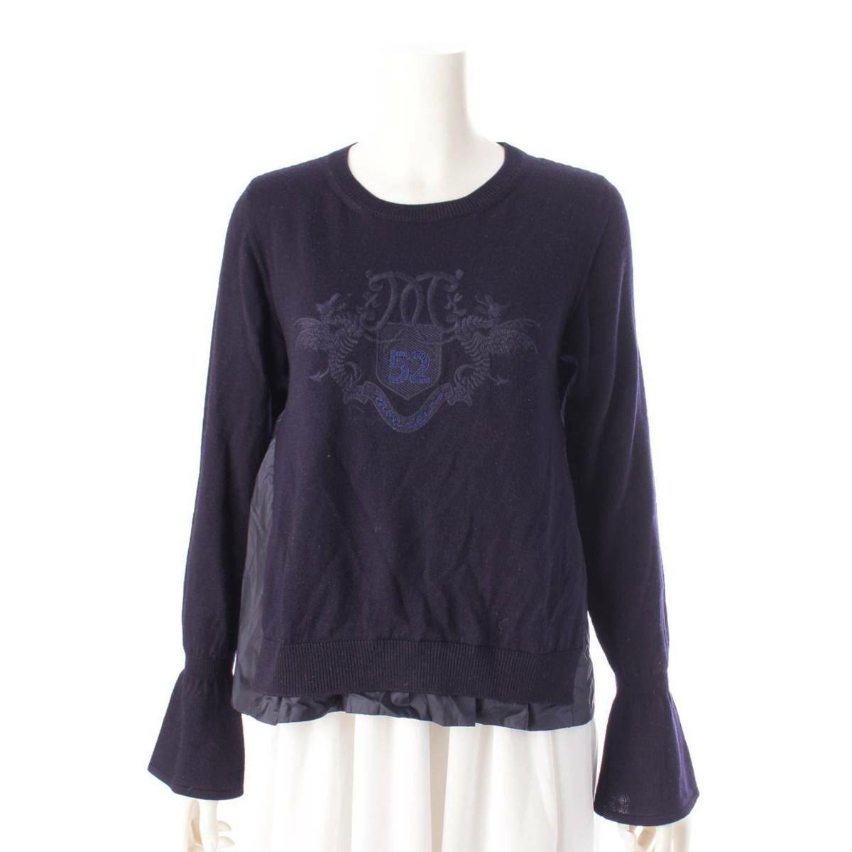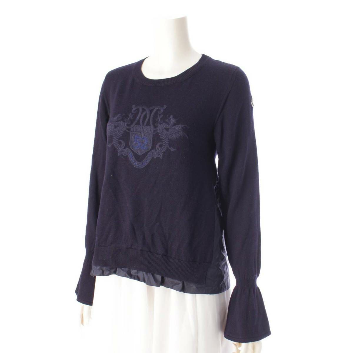 モンクレール Moncler 17年 キッズ ヴァージンウール エンブレム刺繍 ニット セーター ネイビー 14anni