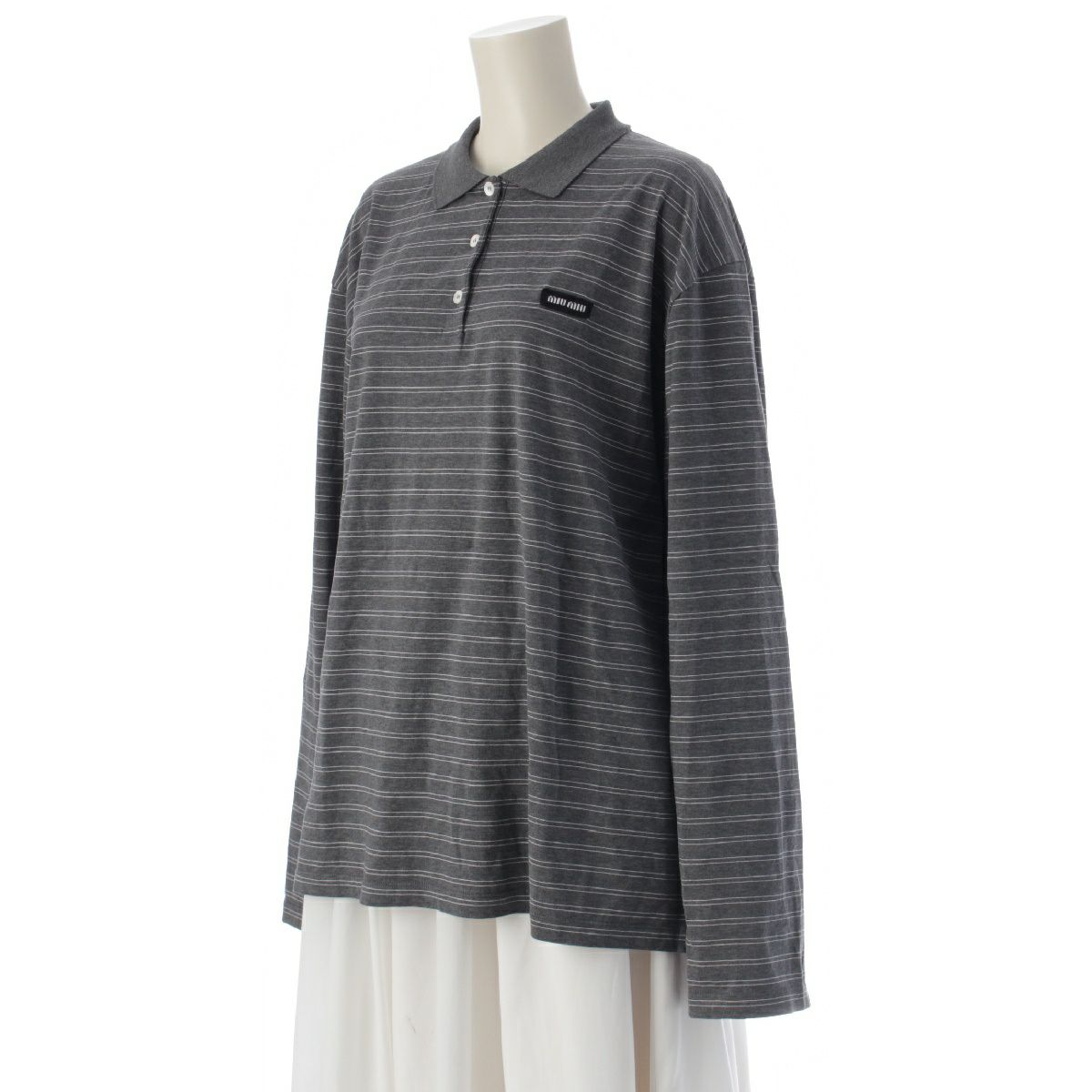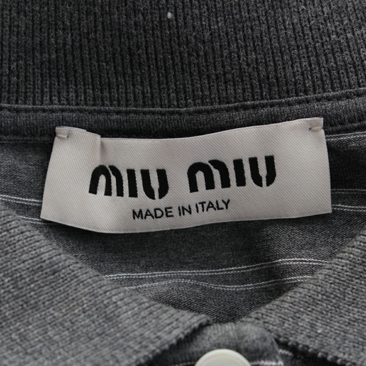ミュウミュウ 25SS コットン ロゴ ジャージ ポロシャツ ジャージ トップス 長袖 MJL015 グレー ブラック M
