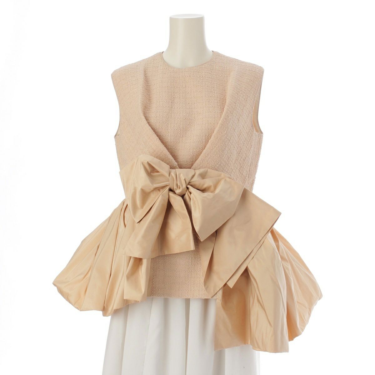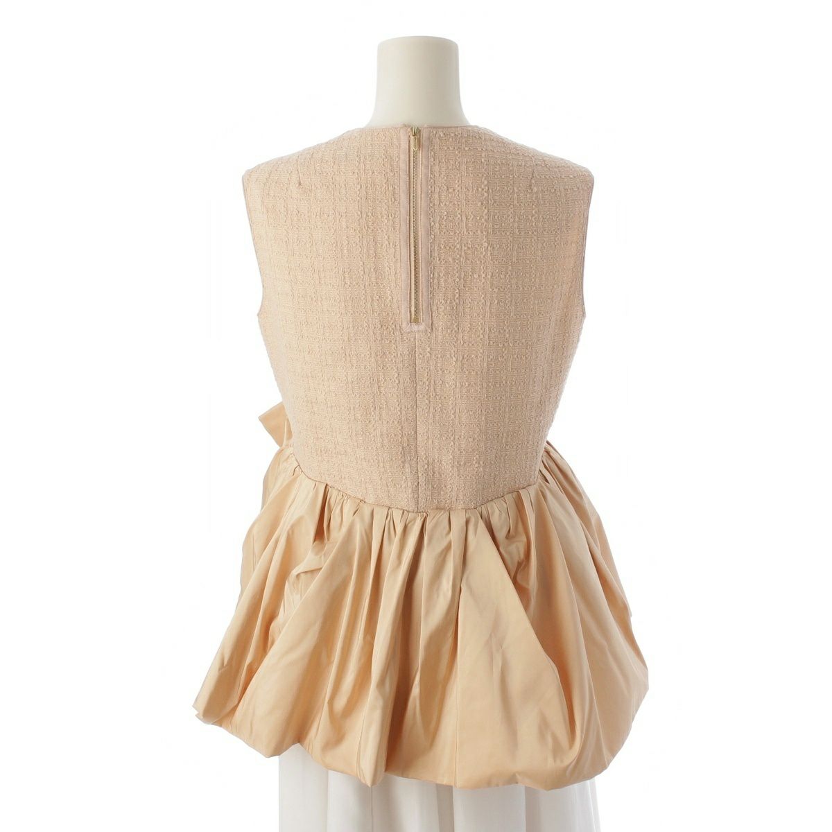 ドゥロワー 22SS シルクタフタ ツイード ノースリーブ チュニック ブラウス 6521-299-0998 ベージュ