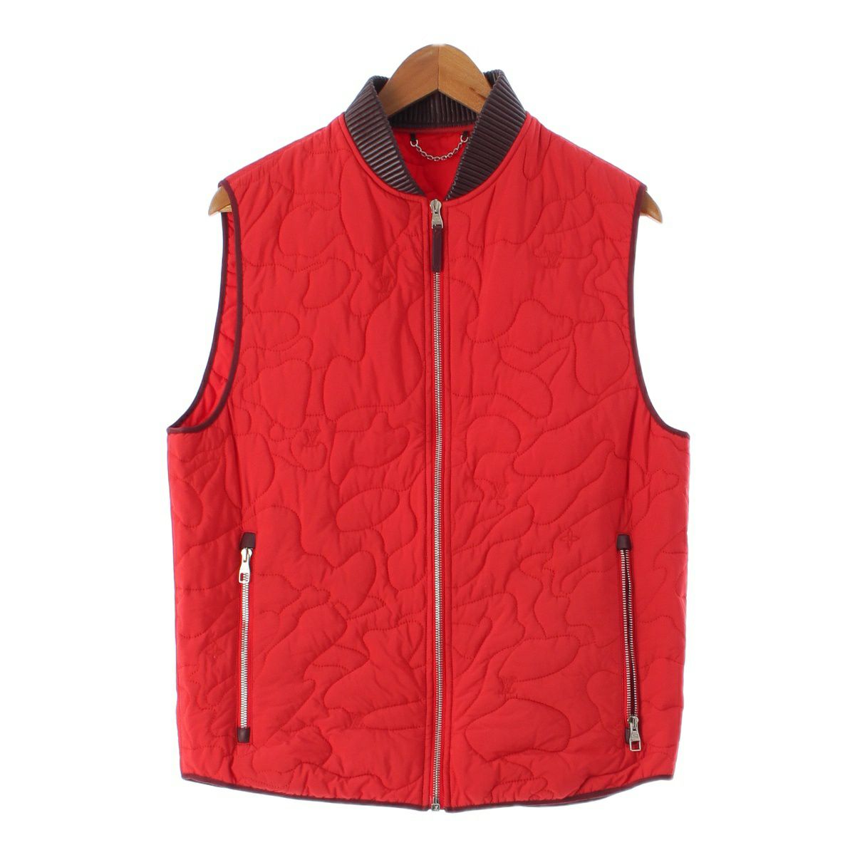 ルイヴィトン モノグラム ナイロン レザー LVロゴ キルティング ベスト ジャケット レッド 48