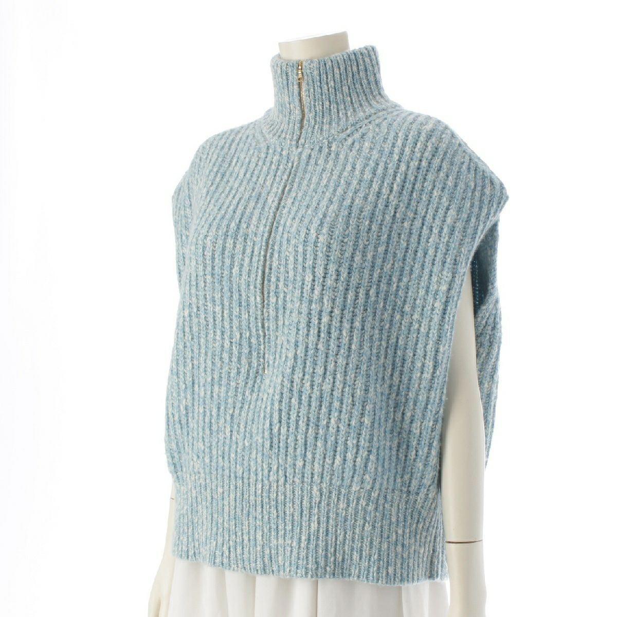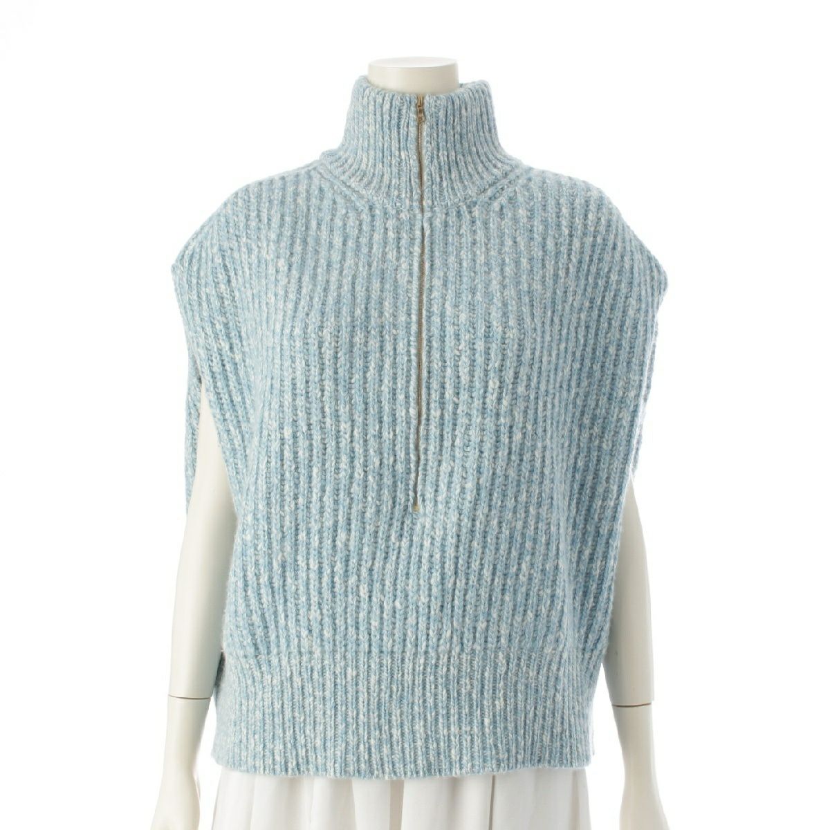 ブラミンク 23年 ウール カシミヤ タートルネック ハーフジップ ニット ベスト 7918-106-0096 ブルー 38