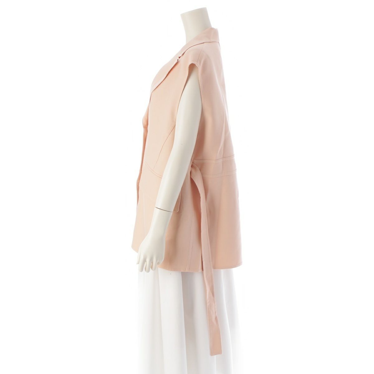 ドゥロワー シルク ノースリーブ ベルト付 オーバーサイズ ベスト ジレ ジャケット 6522-299-0878 ピンクベージュ 36
