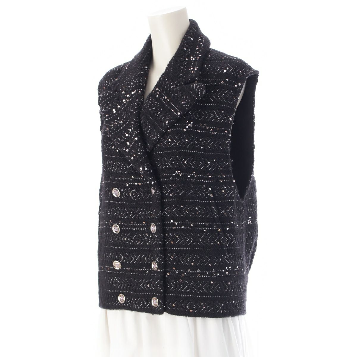 シャネル ウール スパンコール ココボタン ベスト ジャケット P75232 ブラック 36