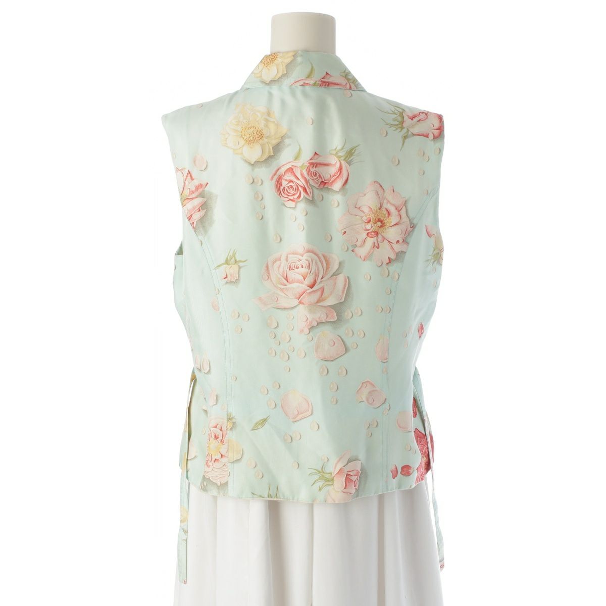 エルメス LA ROSEE 薔薇の雫 シルク ジップアップ ジレ ベスト トップス ライトブルー 44