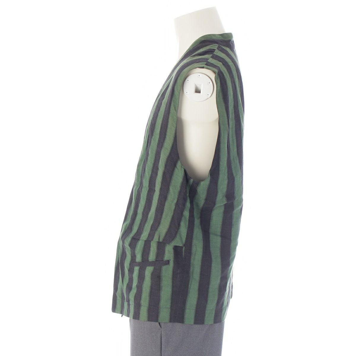 イッセイミヤケ 80s 1986 86年 筆タグ ウール 脱色 ジレ ベスト グリーン ブラック