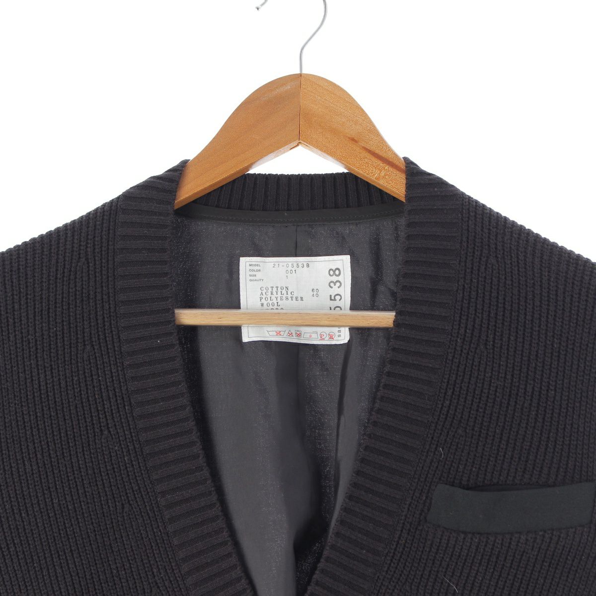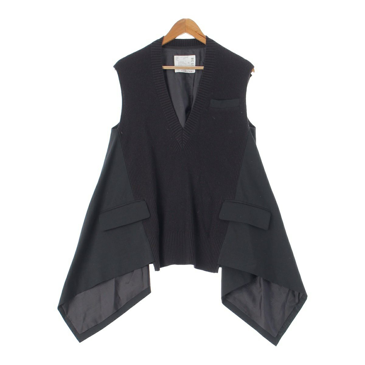 サカイ 21年 コットン Vネック ドッキング ニット切替 ベスト ノースリーブトップス 21-05538 ブラック 1