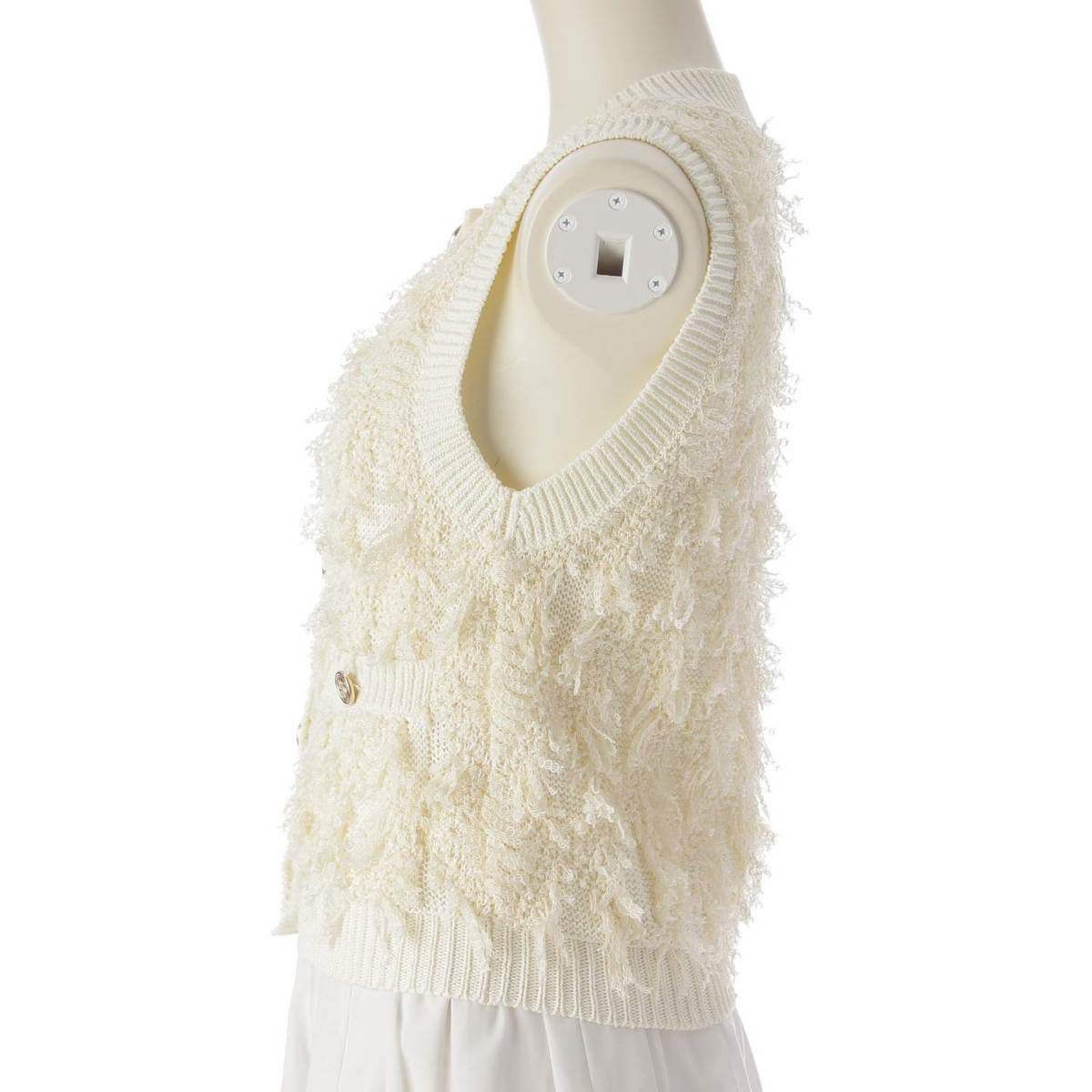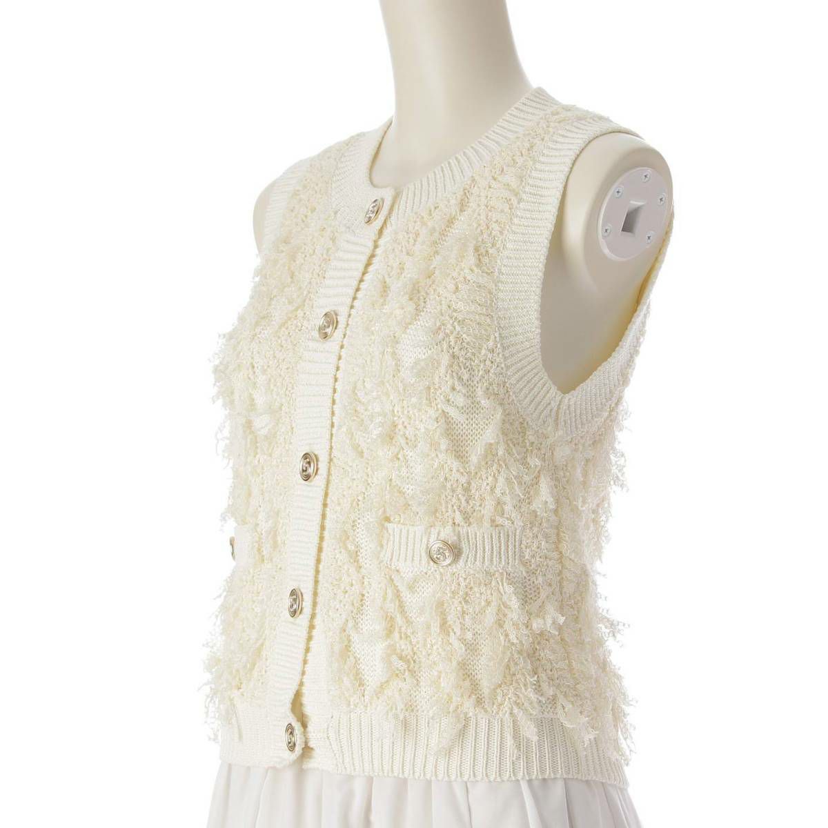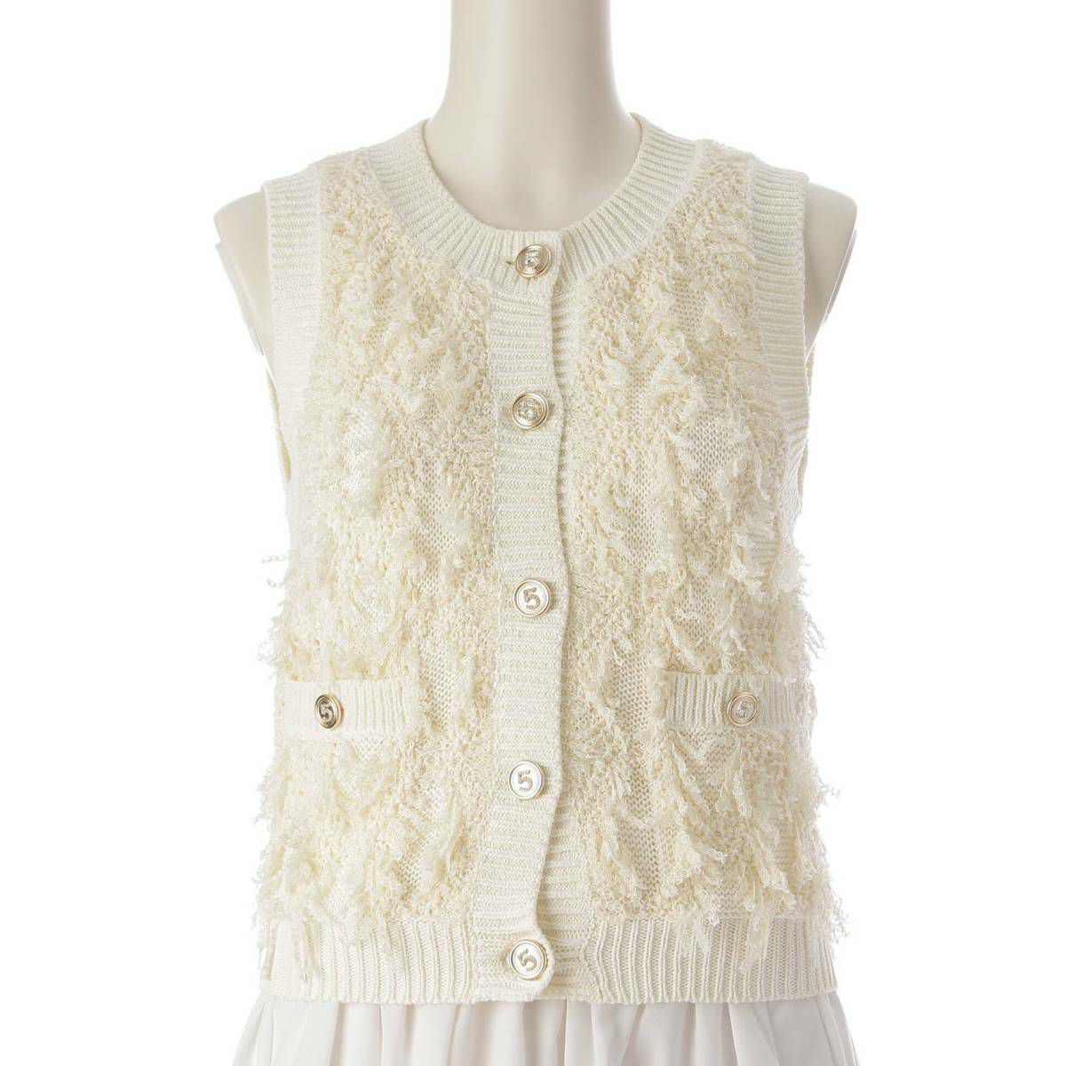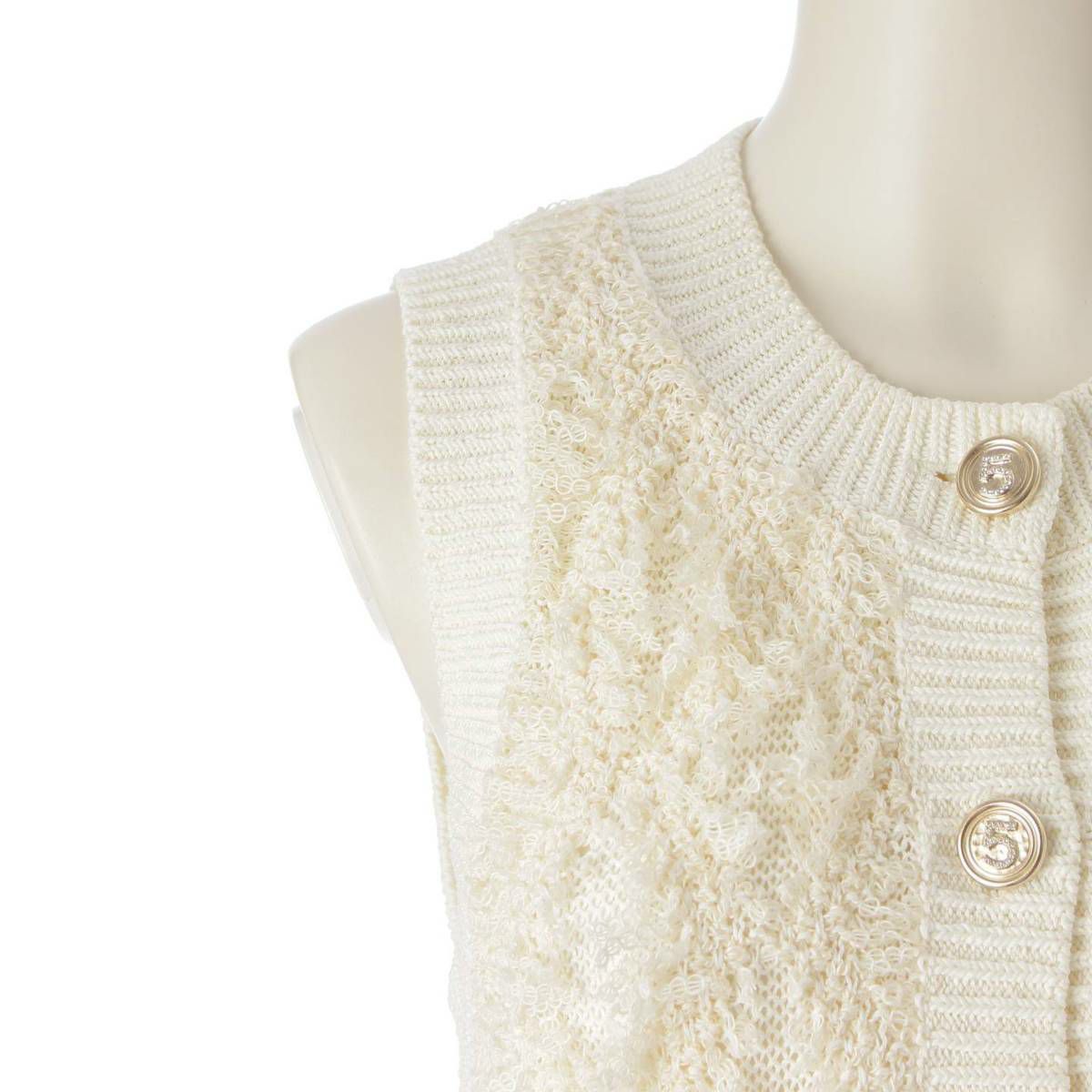 シャネル No5ボタン コットン ベスト ジレ ノースリーブ トップス P70821 ホワイト 34