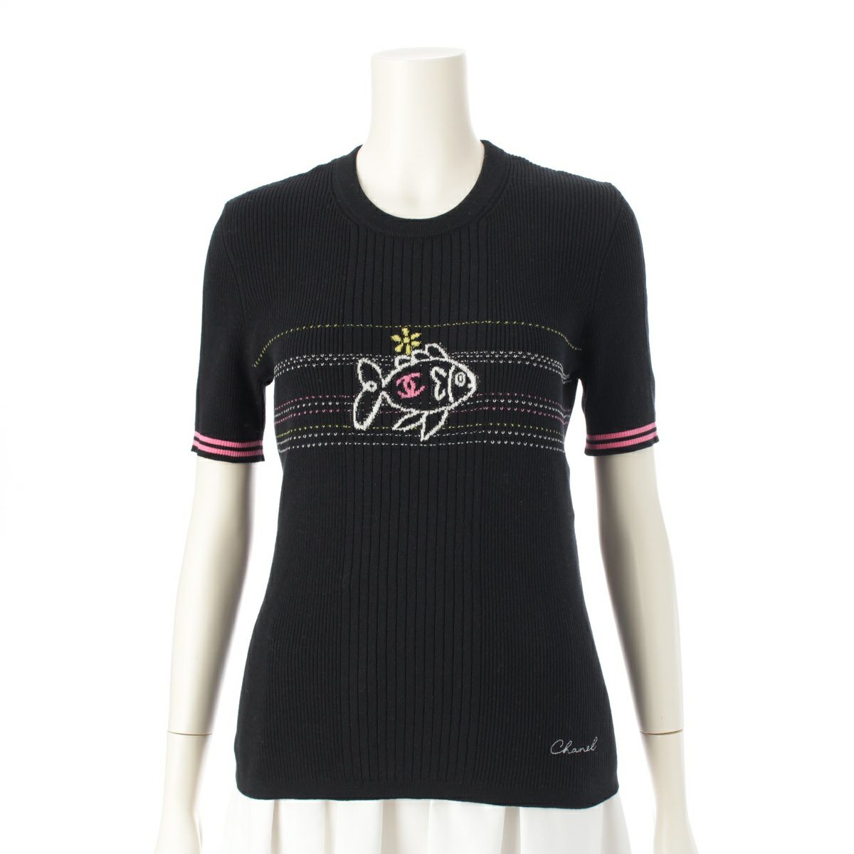 他の画像を見る CHANEL シャネル 25C コットン 魚刺繍 ココマーク 半袖 ニット カットソー Tシャツ P78698 ブラック 40 在庫切れ お気に入りに登録する 当店特別価格 ¥ 220,000 税込 円 200,000円