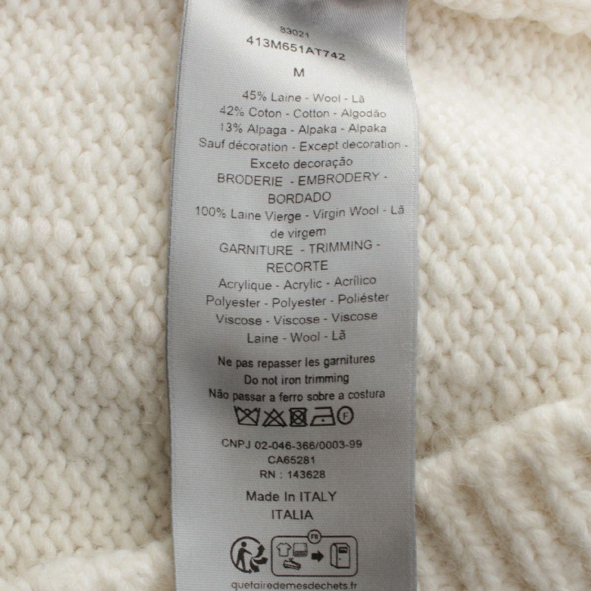 他の画像を見る Dior ディオール 24SS ウール ダメージ加工 オータニワークショップ ニット セーター トップス 413M651AT742 ホワイト M お気に入りに登録する 当店特別価格 ¥ 99,000 税込 円 90,000円