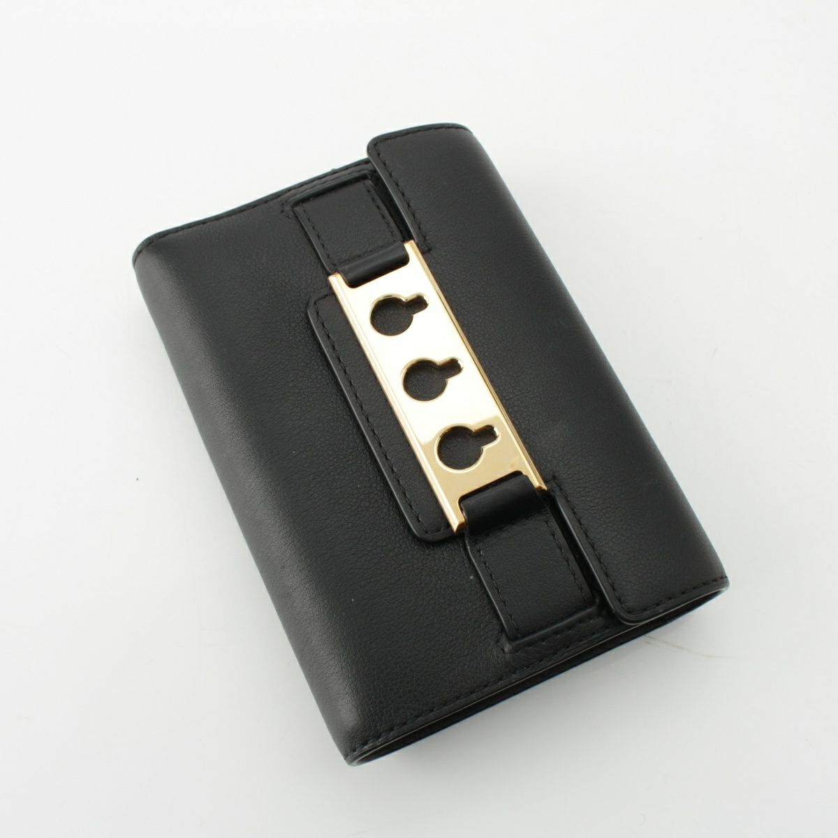 デルヴォー タンペート サプルカーフ コンパクトウォレット 三つ折り財布 コインケース AB0564AAX099ZDO ブラック ゴールド金具