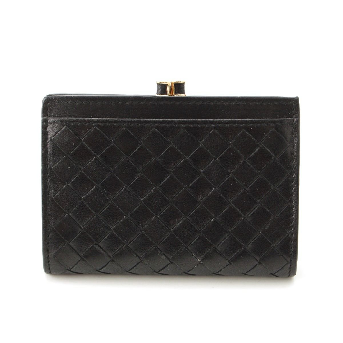 ボッテガヴェネタ レザー イントレチャート がま口 コインケース コンパクトウォレット ブラック