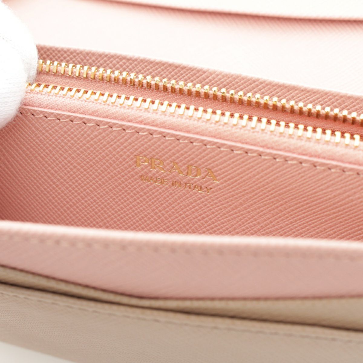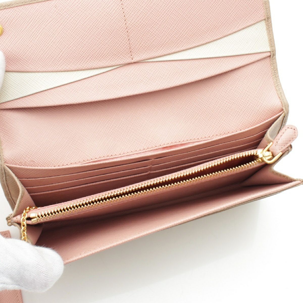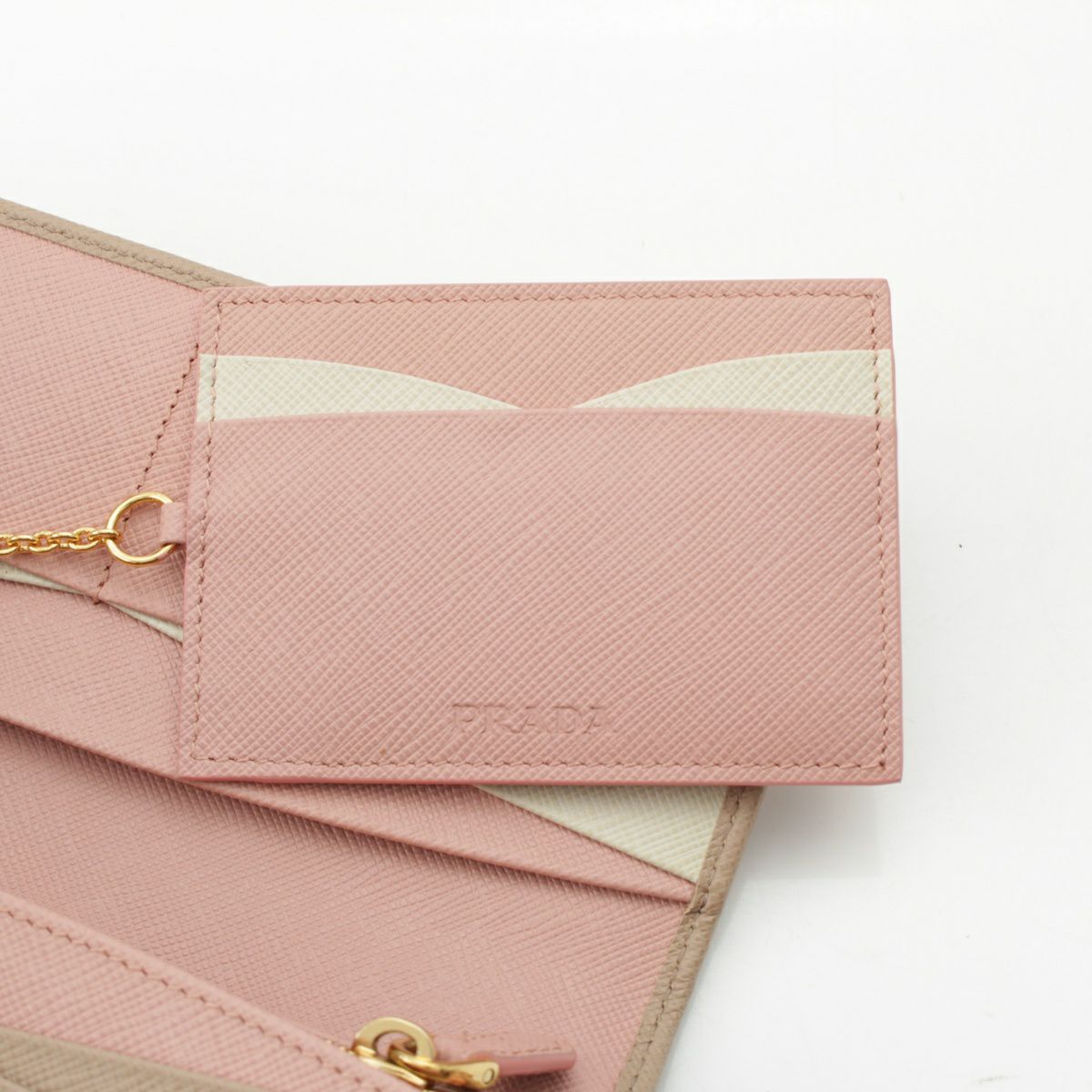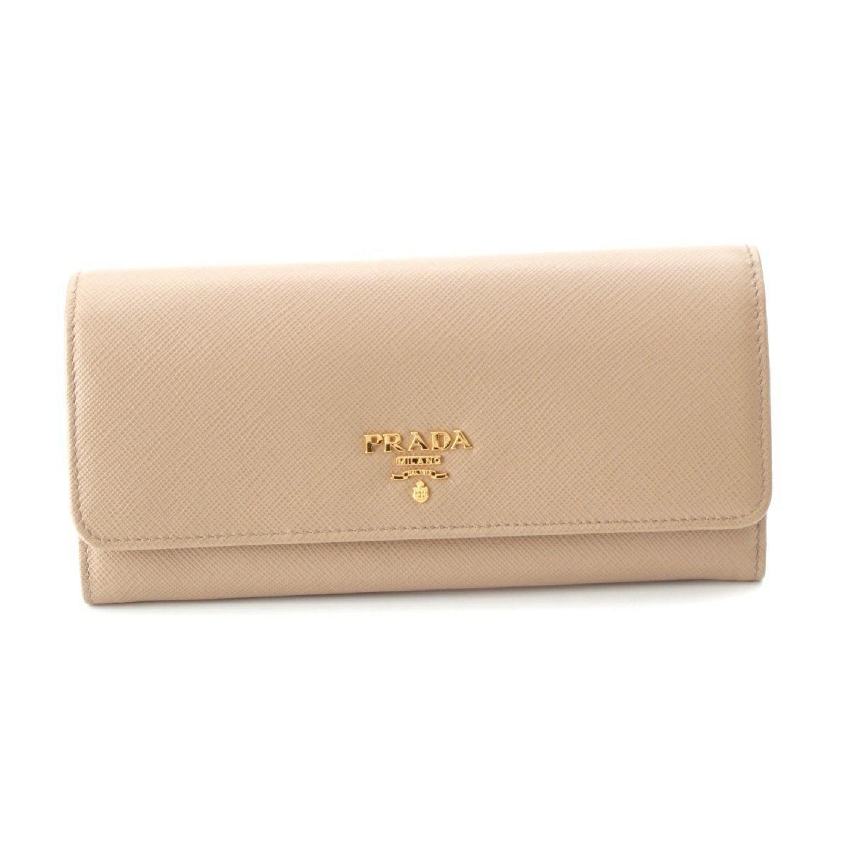 プラダ サフィアーノレザー ロゴ パスケース付き 二つ折り 長財布 ロングウォレット 1MH132 ベージュ ピンク