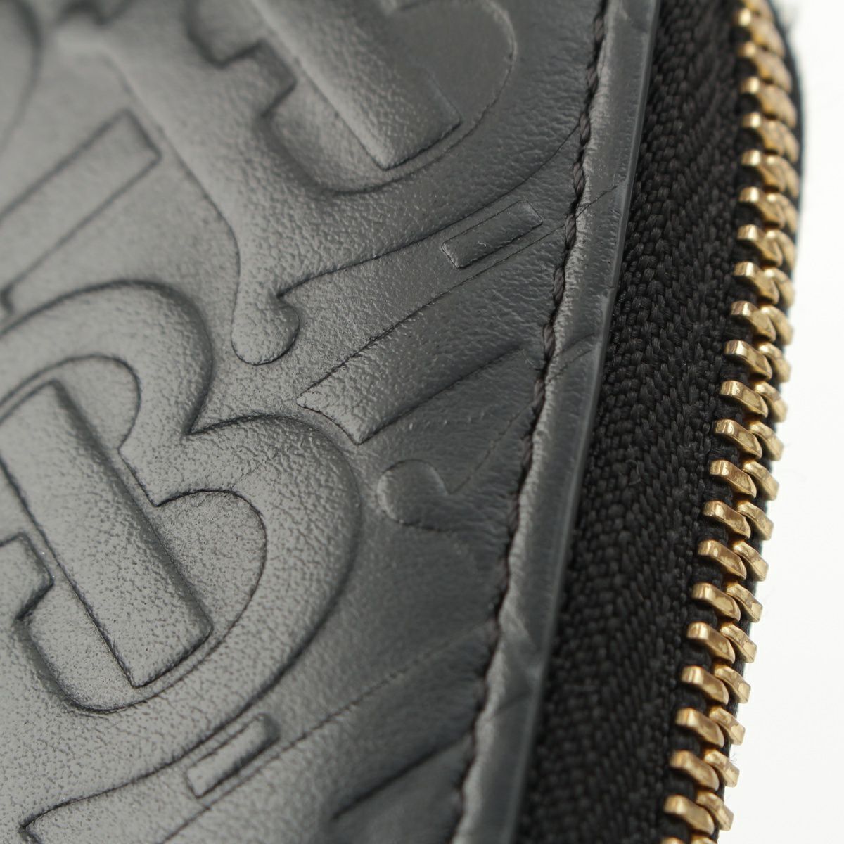 バーバリー レザー TBパターン ラウンドジップウォレット 長財布 ブラック