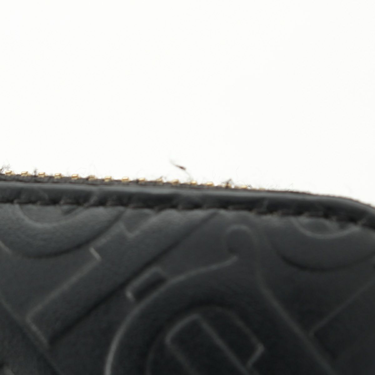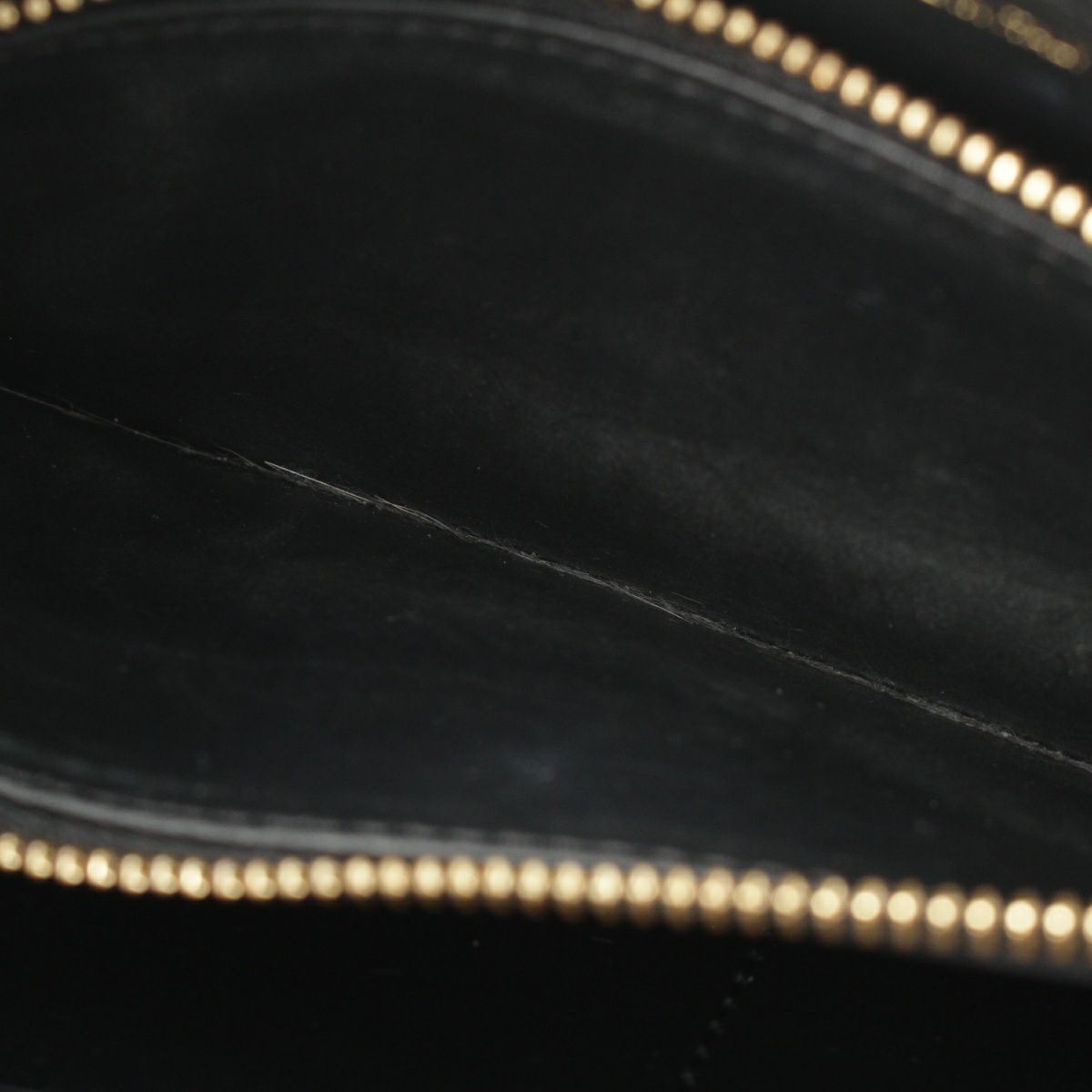 ダメージ箇所: 角、正面右端中央、背面上部中央、ファスナー金具等に擦れ/傷、ファスナーテープに毛羽立ち、小銭入れ内側等に汚れ、