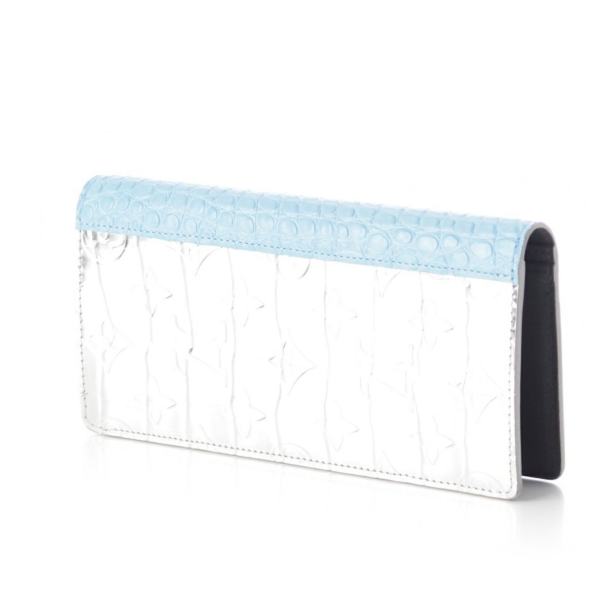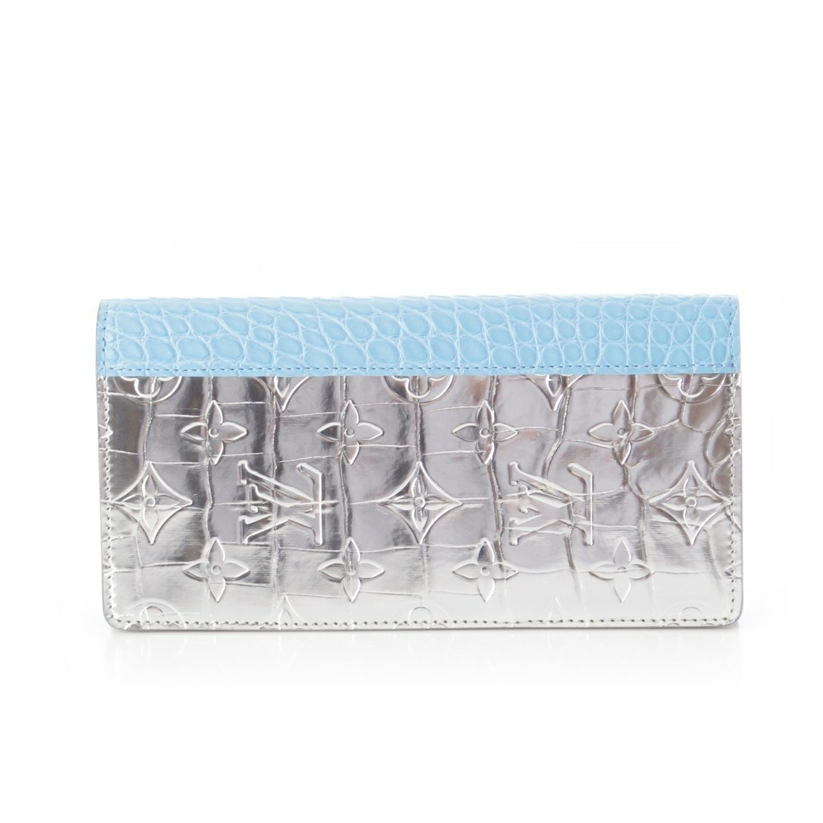 ルイヴィトン モノグラム ミラー ポルトフォイユ ブラザ クロコダイル 長財布 ウォレット N80345 ブルー×シルバー