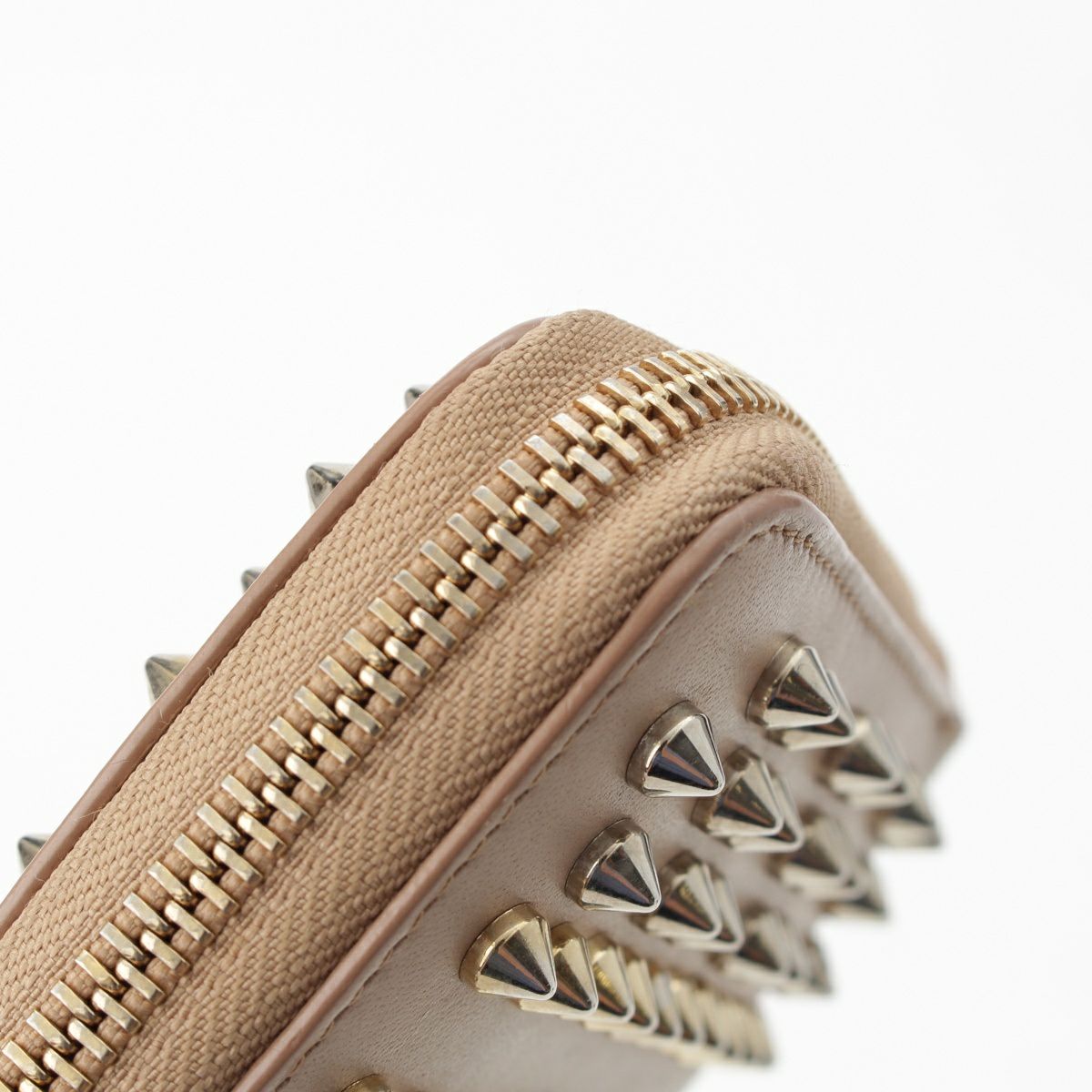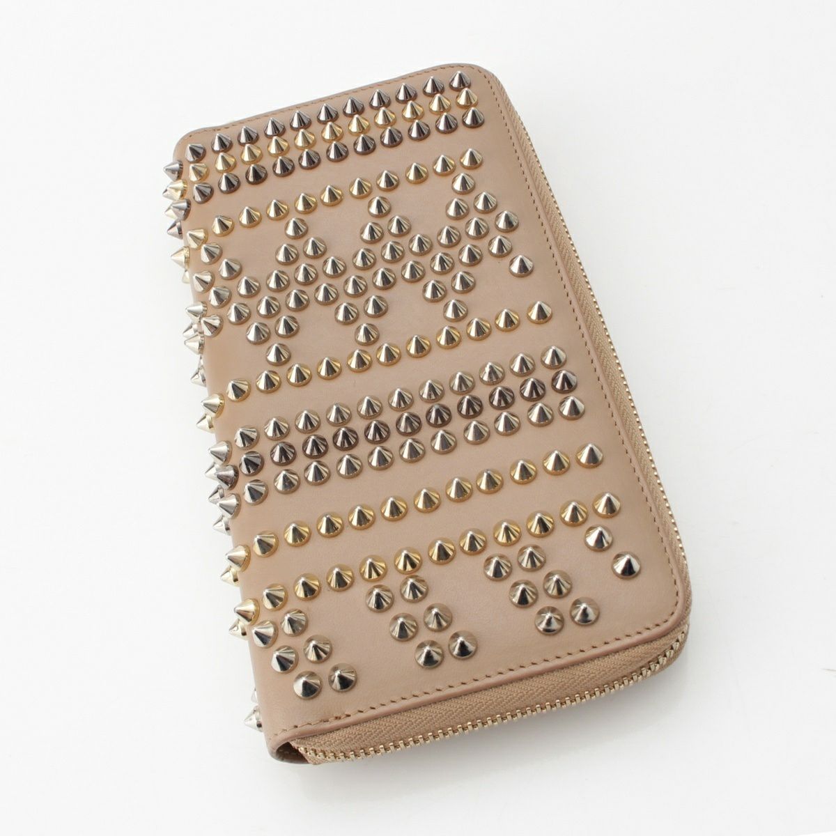 クリスチャンルブタン パネトーネ スパイクスタッズ ラウンドジップ ウォレット 長財布 ベージュ
