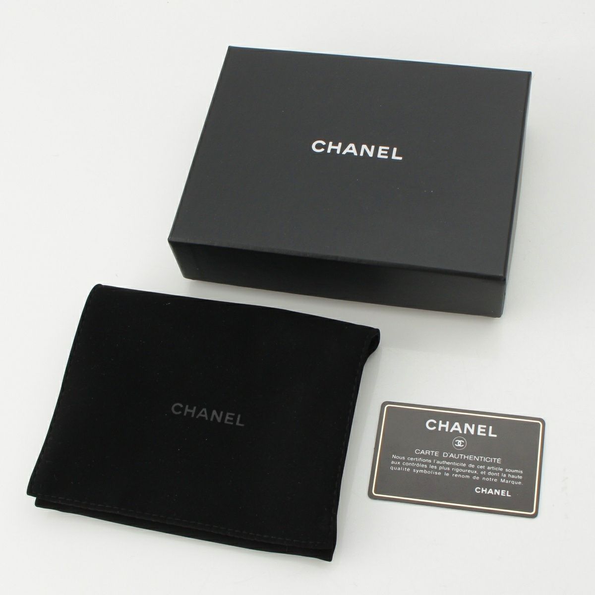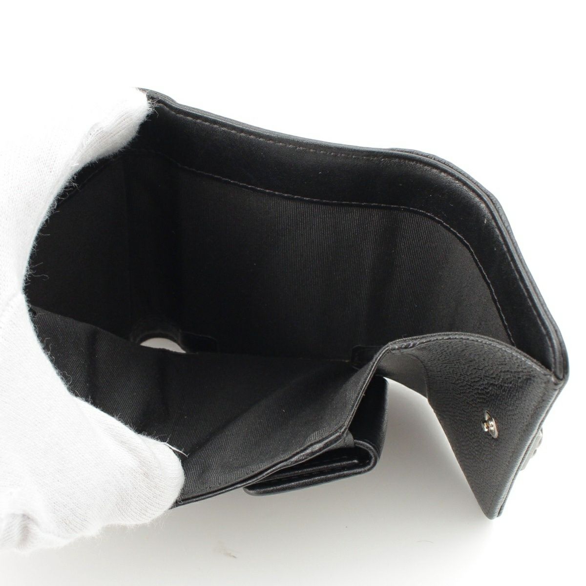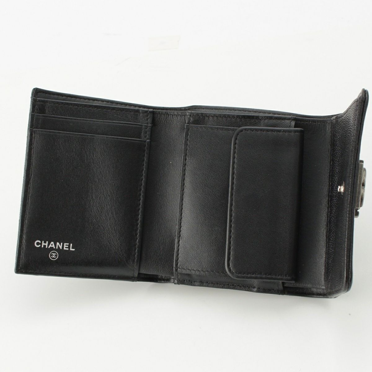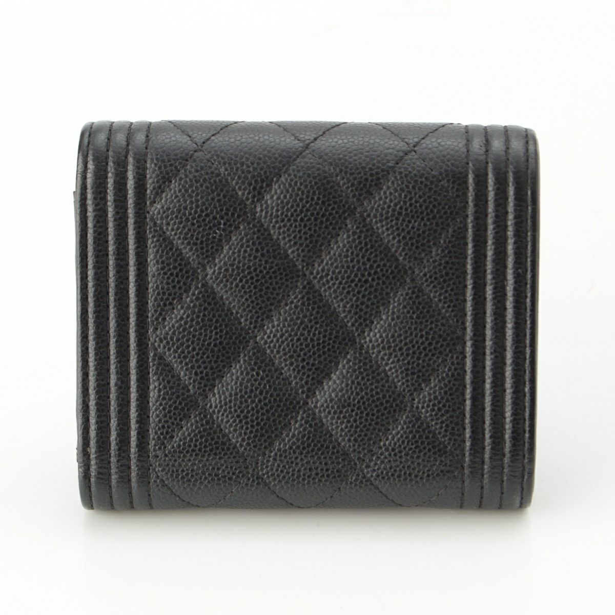 シャネル 25番台 ボーイシャネル キャビアスキン ココマーク 三つ折り財布 スモール フラップ エイジングシルバー金具 A84432 ブラック