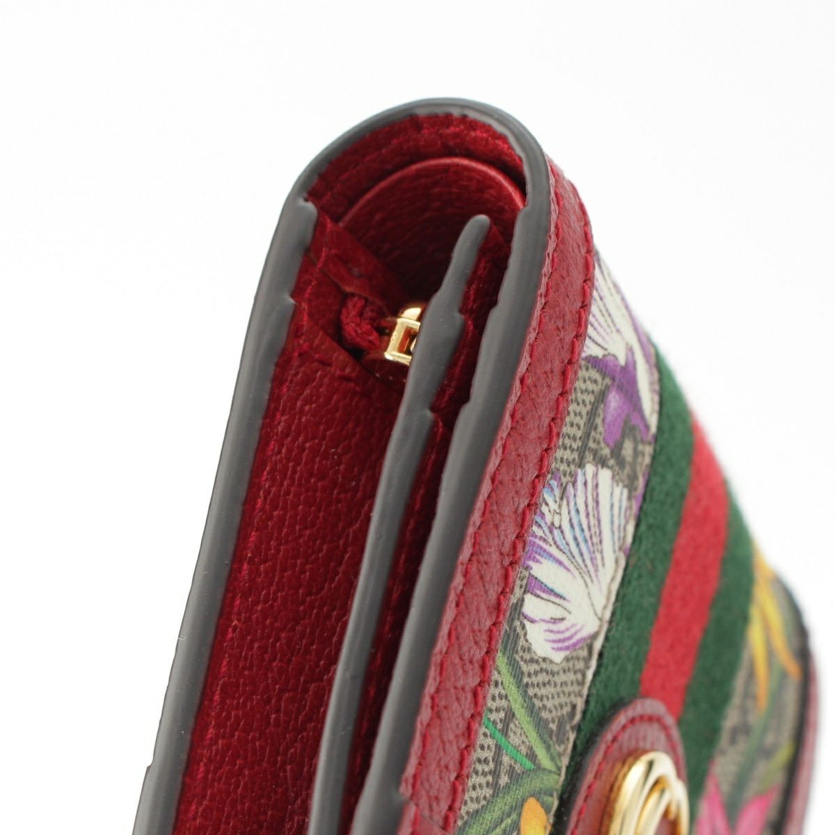 グッチ レザー GG フローラル オフィディア ウォレット 二つ折り財布 523155 レッド マルチカラー