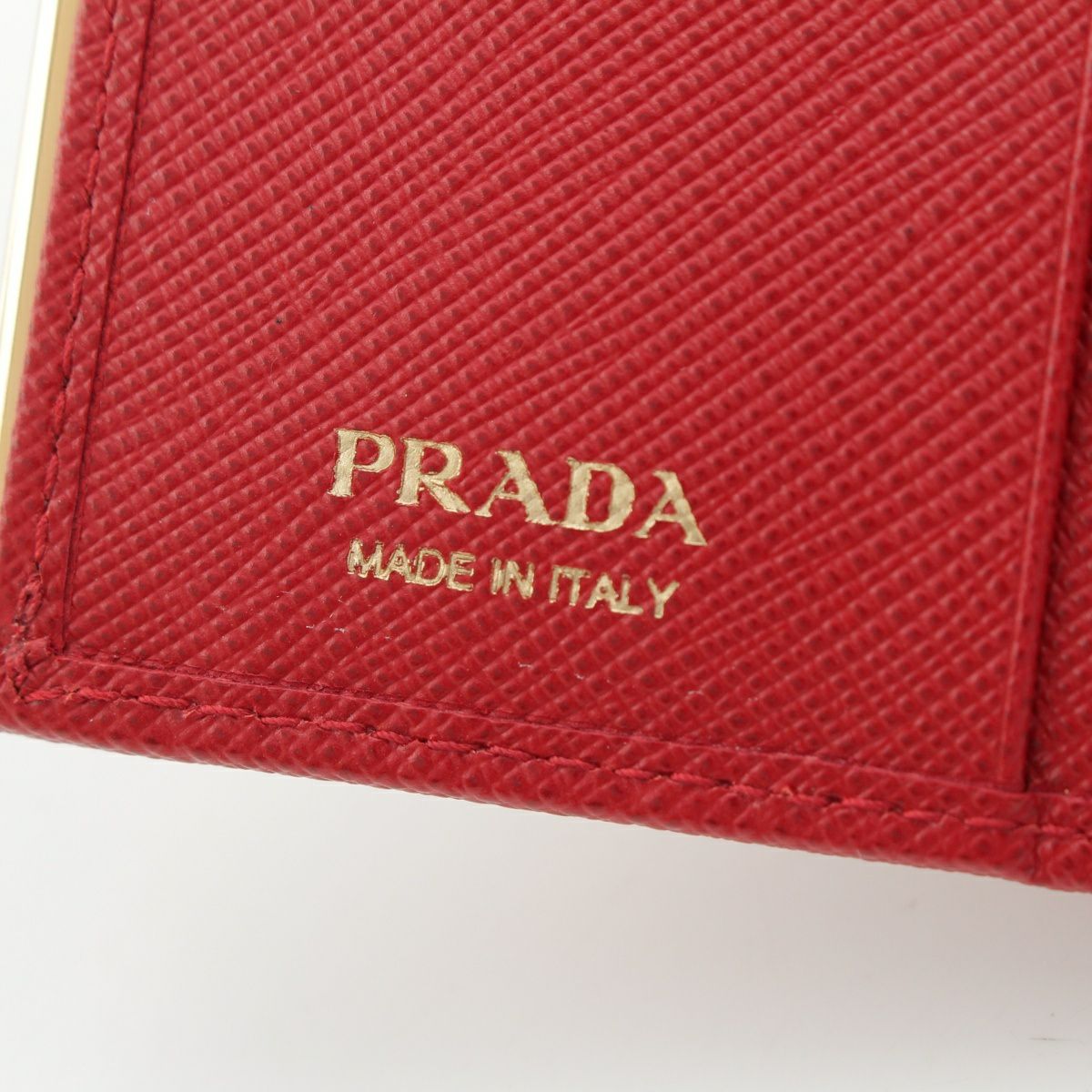 プラダ レザー ロゴ 二つ折り財布 コンパクトウォレット レッド