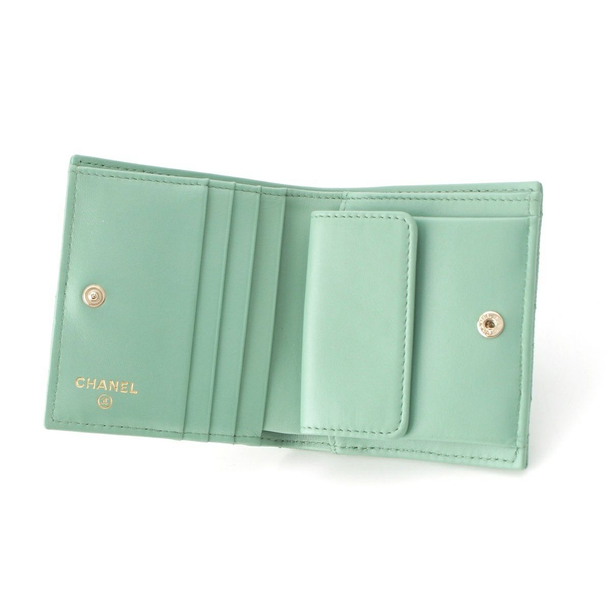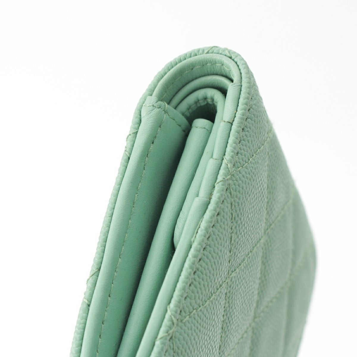 シャネル マトラッセ キャビアスキン コンパクトウォレット 二つ折り財布 ランダム品番 グリーン