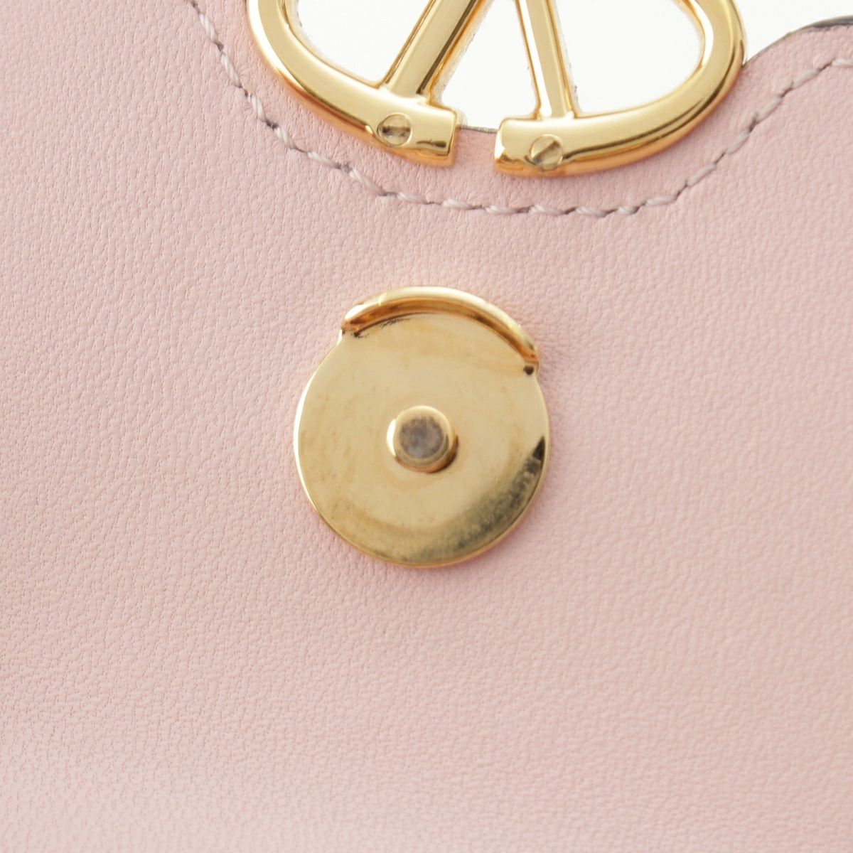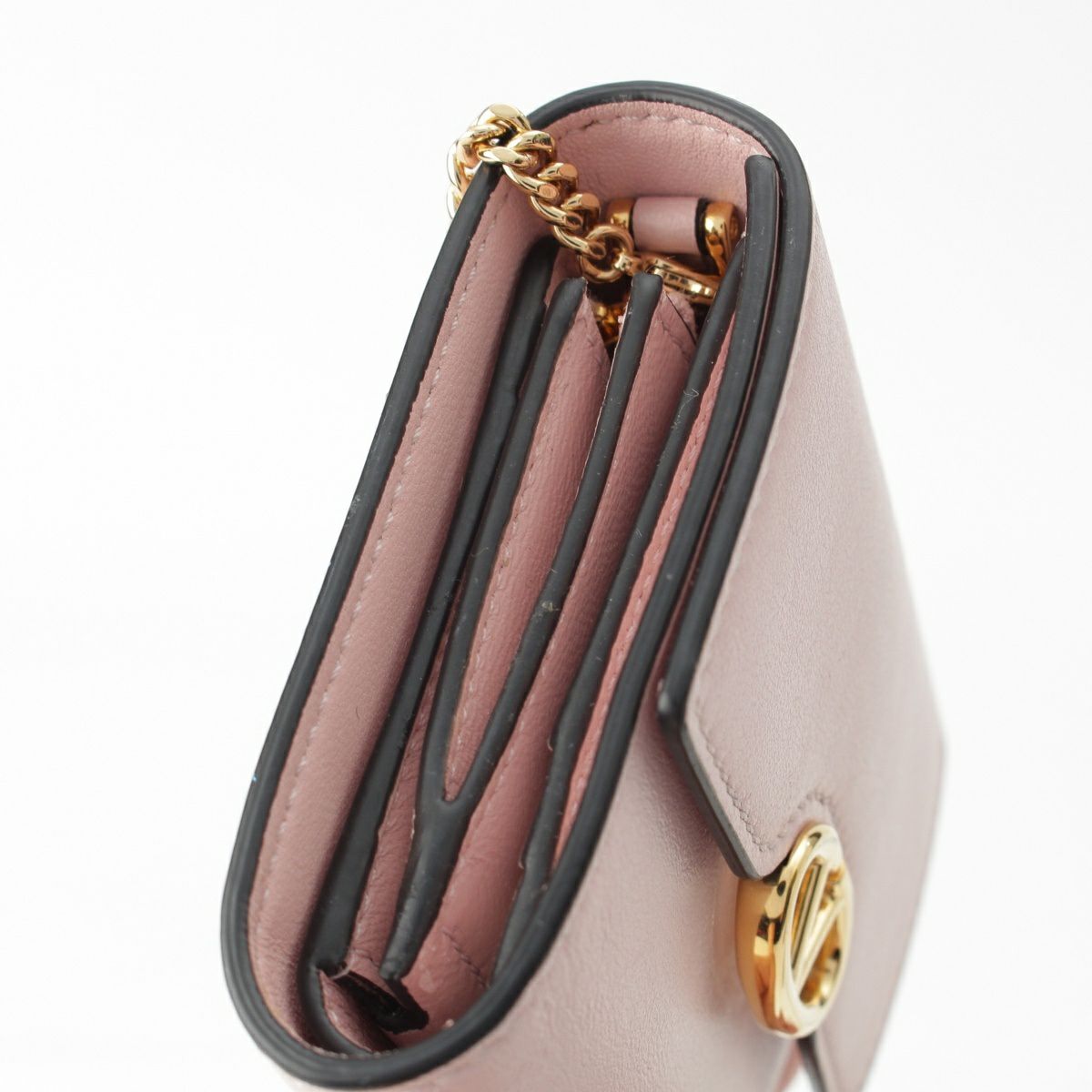 ヴァレンティノ レザー Vロゴ チェーン ショルダー コンパクトウォレット 三つ折り財布 ピンク