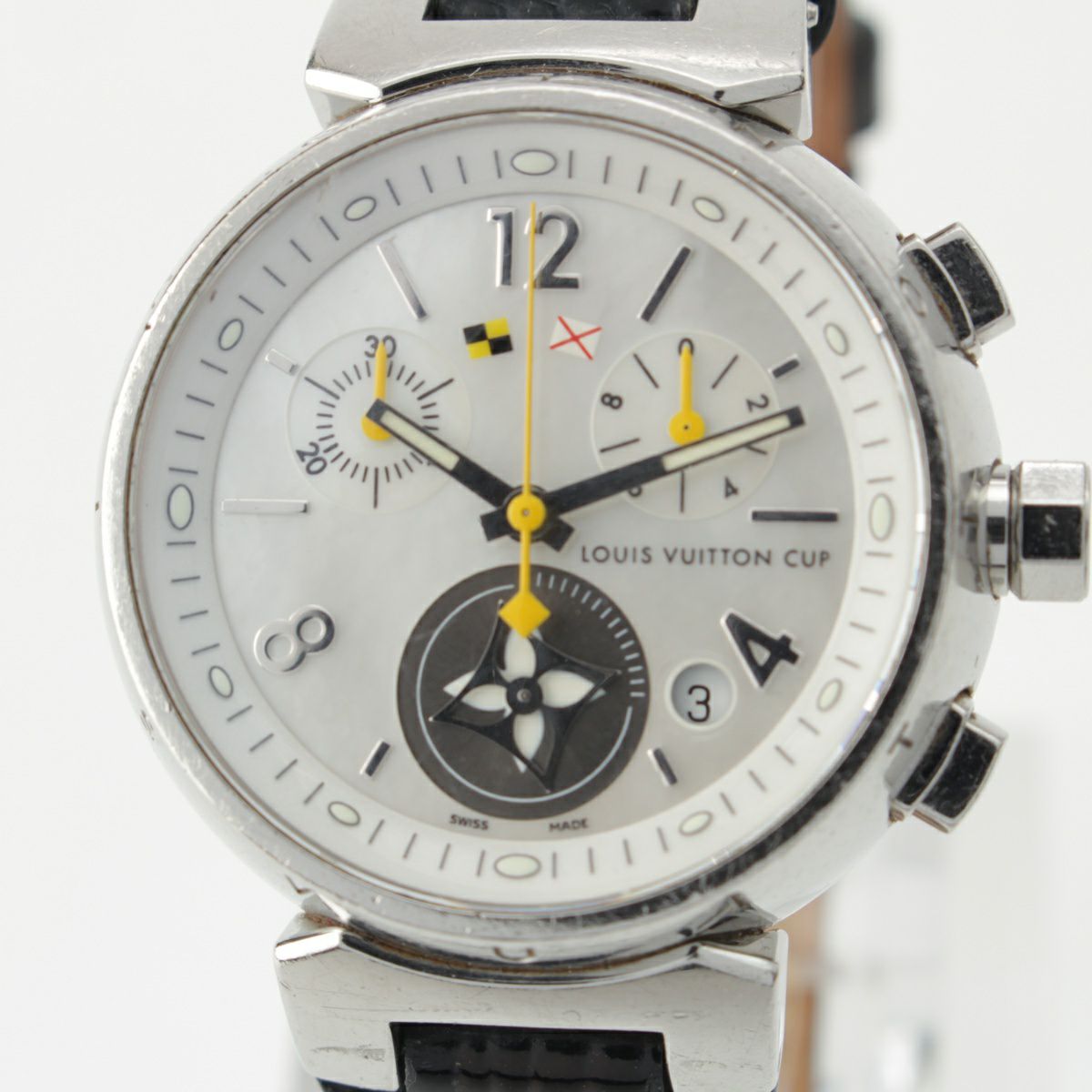 他の画像を見る LOUIS VUITTON ルイヴィトン タンブール ラブリーカップ クロノグラフ SS シェル文字盤 腕時計 QZ ウォッチ Q132C ブラック シルバー 在庫切れ お気に入りに登録する 当店特別価格 ¥ 77,000 税込 円 70,000円