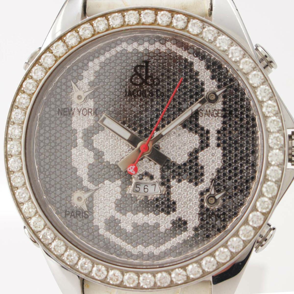 他の画像を見る JACOB&CO ジェイコブ JACOBCO メンズ 5タイムゾーン スカル 純正ダイヤモンド 腕時計 JC-SKULL8D ホワイト ブラック お気に入りに登録する 当店特別価格 ¥ 1,320,000 税込 円 1,200,000円