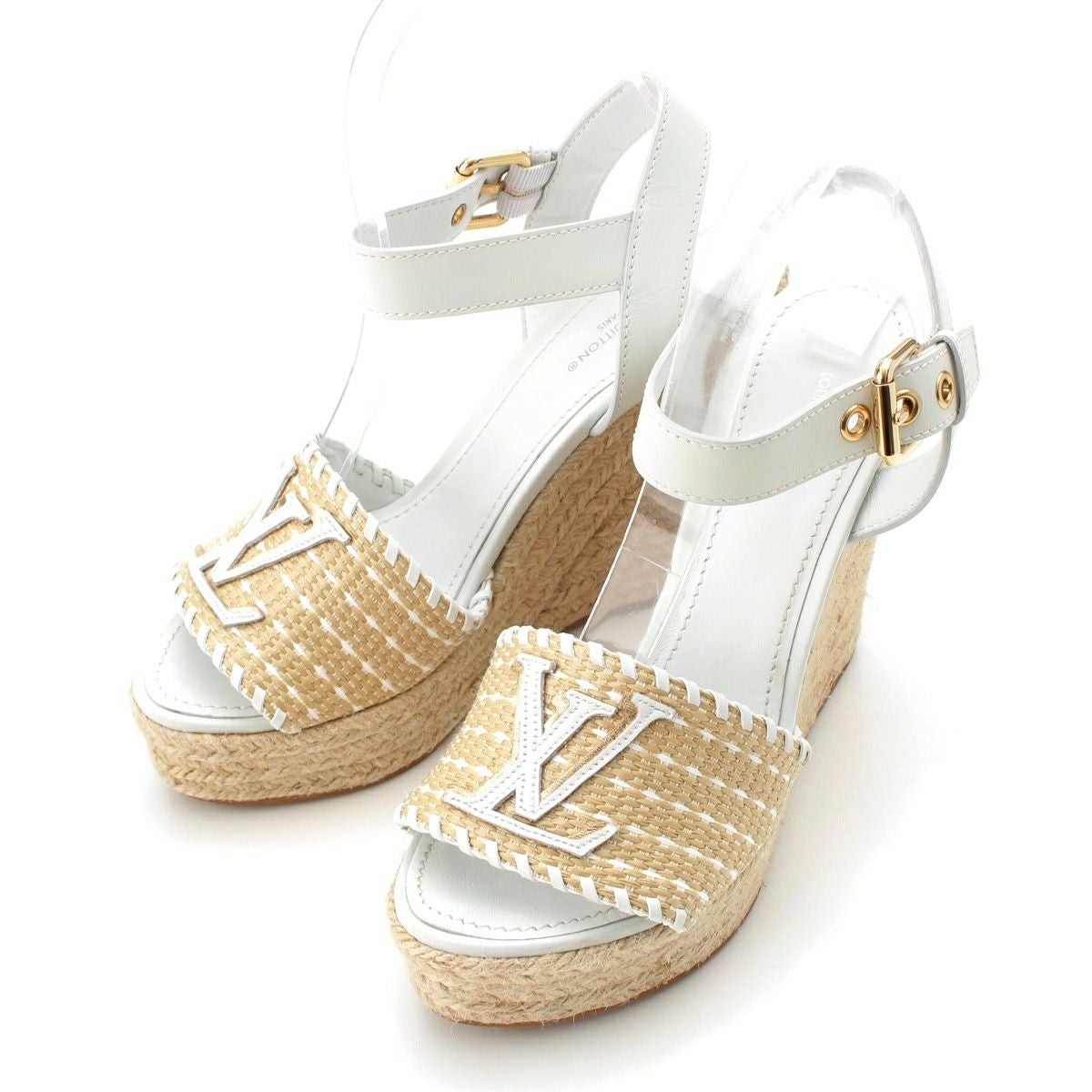 他の画像を見る LOUIS VUITTON ルイヴィトン スターボードライン ラフィア×レザー LVロゴ ウェッジソール ヒール サンダル ホワイト ベージュ 36 1/2 在庫切れ お気に入りに登録する 当店特別価格 ¥ 44,000 税込 円 40,000円