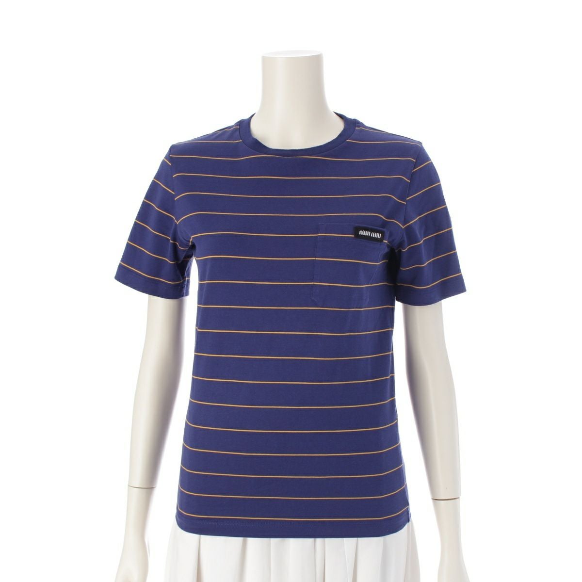 他の画像を見る MIUMIU ミュウミュウ 24年 コットン ボーダー ジャージー 半袖Tシャツ トップス MJN537 ネイビー×オレンジ XS 在庫切れ お気に入りに登録する 当店特別価格 ¥ 57,200 税込 円 52,000円