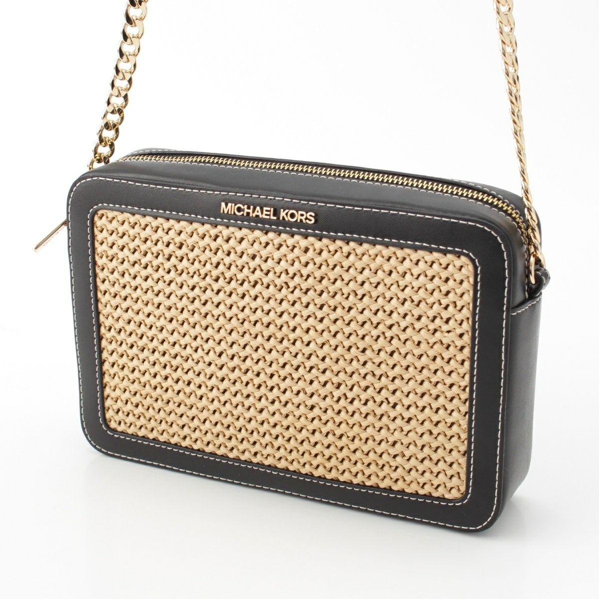 他の画像を見る Michael Kors マイケルコース レザー ラフィア チェーン ショルダーバッグ ブラック ナチュラル 在庫切れ お気に入りに登録する 当店特別価格 ¥ 8,800 税込 円 8,000円