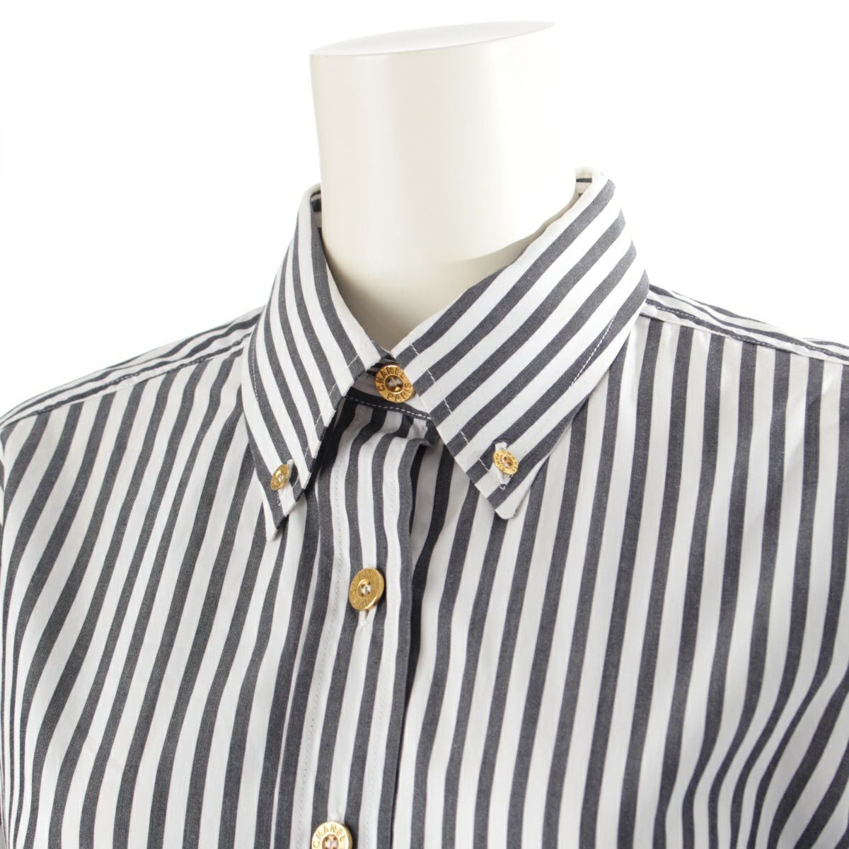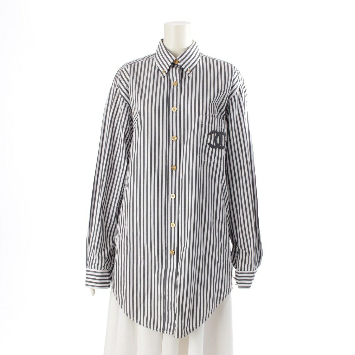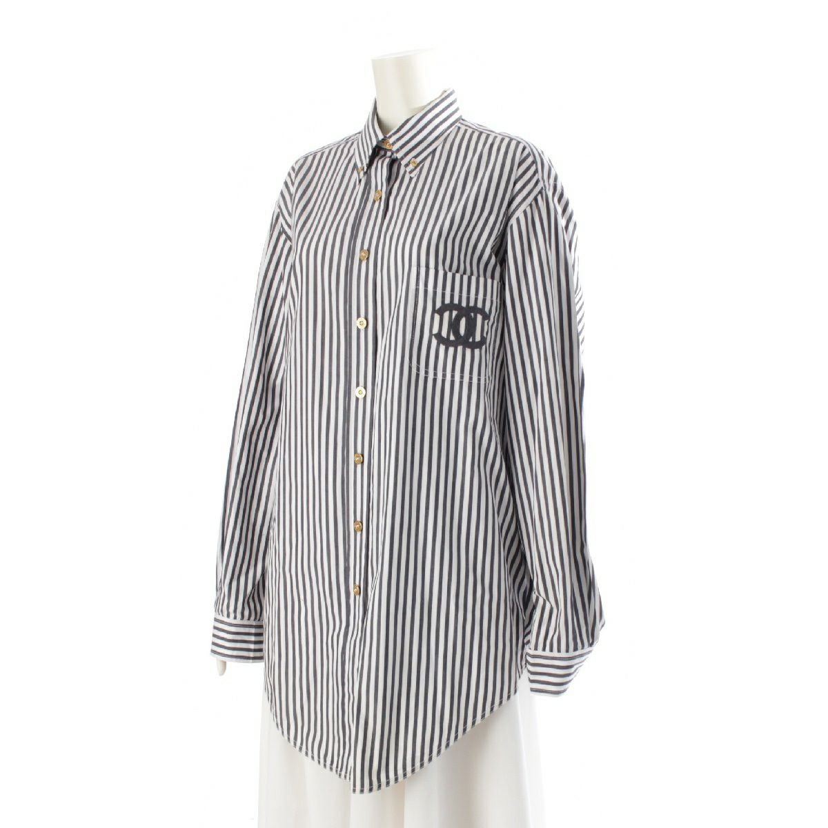 他の画像を見る CHANEL シャネル コットン ヴィンテージ ストライプ 胸ロゴ ボタンダウン 長袖シャツ ブラウス グレー ホワイト 在庫切れ お気に入りに登録する 当店特別価格 ¥ 143,000 税込 円 130,000円