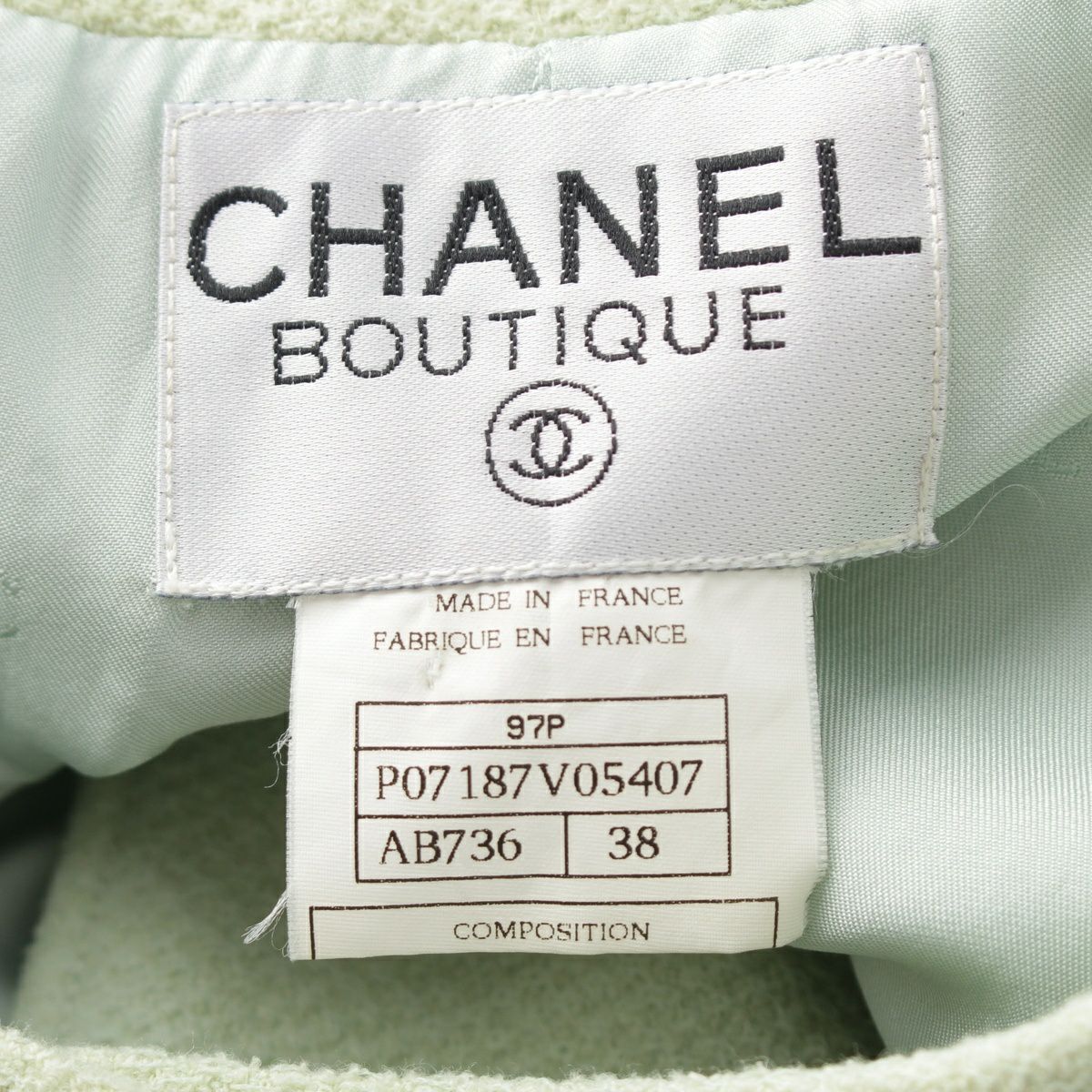 他の画像を見る CHANEL シャネル 97P ウール シルク ノーカラージャケット スカートセットアップ P07187 ライトグリーン 38 お気に入りに登録する 当店通常価格 ¥ 69,300 のところ 当店特別価格 ¥ 62,700 税込 63,000円 57,000円