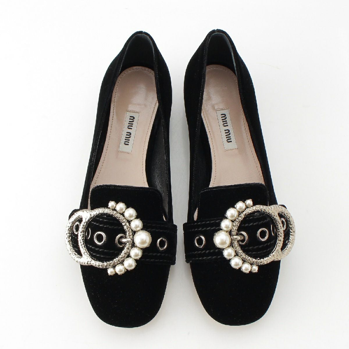 他の画像を見る MIUMIU ミュウミュウ ベロア ベルベッド パール ビジュー バックル フラット パンプス オペラシューズ ブラック 39 在庫切れ お気に入りに登録する 当店特別価格 ¥ 18,700 税込 円 17,000円