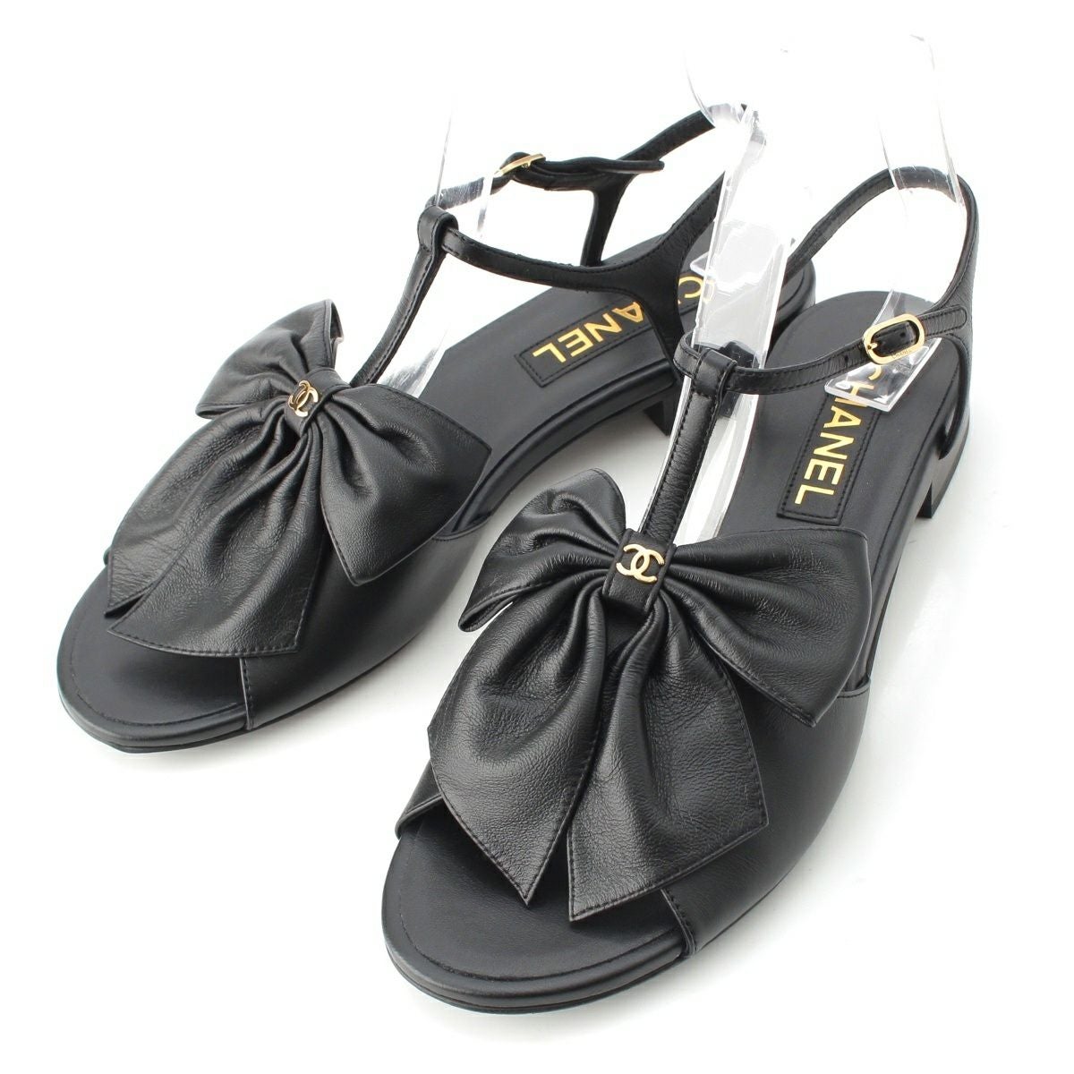 他の画像を見る CHANEL シャネル 23-24 AW ラムスキン レザー ココマーク ビッグリボン アンクルストラップ サンダル シューズ フラット G45862 ブラック ゴールド 38 1/2 C 在庫切れ お気に入りに登録する 当店特別価格 ¥ 53,900 税込 円 49,000円