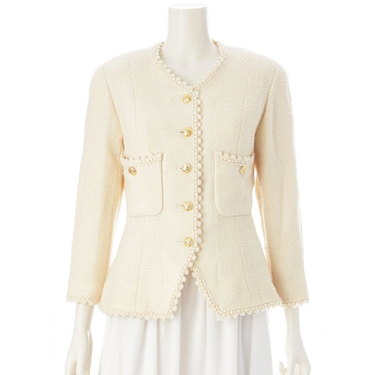 他の画像を見る CHANEL シャネル ツイード ココボタン 紙タグ ノーカラージャケット クリーム アイボリー イエロー 40 在庫切れ お気に入りに登録する 当店特別価格 ¥ 88,000 税込 円 80,000円