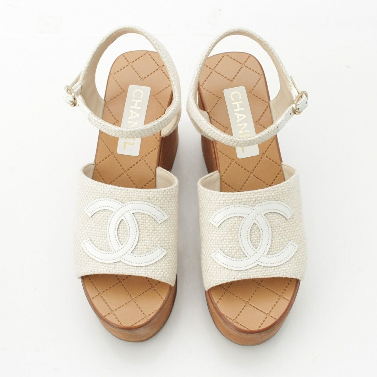 他の画像を見る CHANEL シャネル 24P ウッド ウッドソール プラットフォーム キャンバス ココマーク サンダル G45555 ホワイト ブラウン系 39c 在庫切れ お気に入りに登録する 当店特別価格 ¥ 99,000 税込 円 90,000円