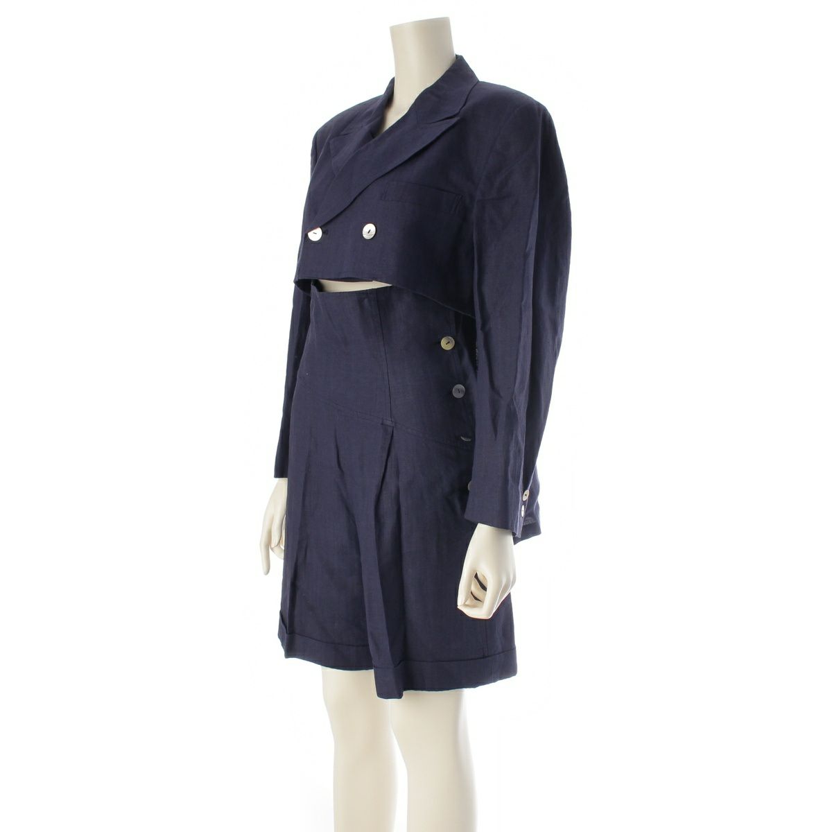 他の画像を見る tricot COMME des GARCONS トリココムデギャルソン 80s 麻 リネン 変形 スリット シェルボタン バイアス バミューダ 燕尾 ジャケット ショート パンツセットアップ TJ-020210 TP-02014M ネイビー お気に入りに登録する 当店特別価格 ¥ 30,800 税込 円 28,000円