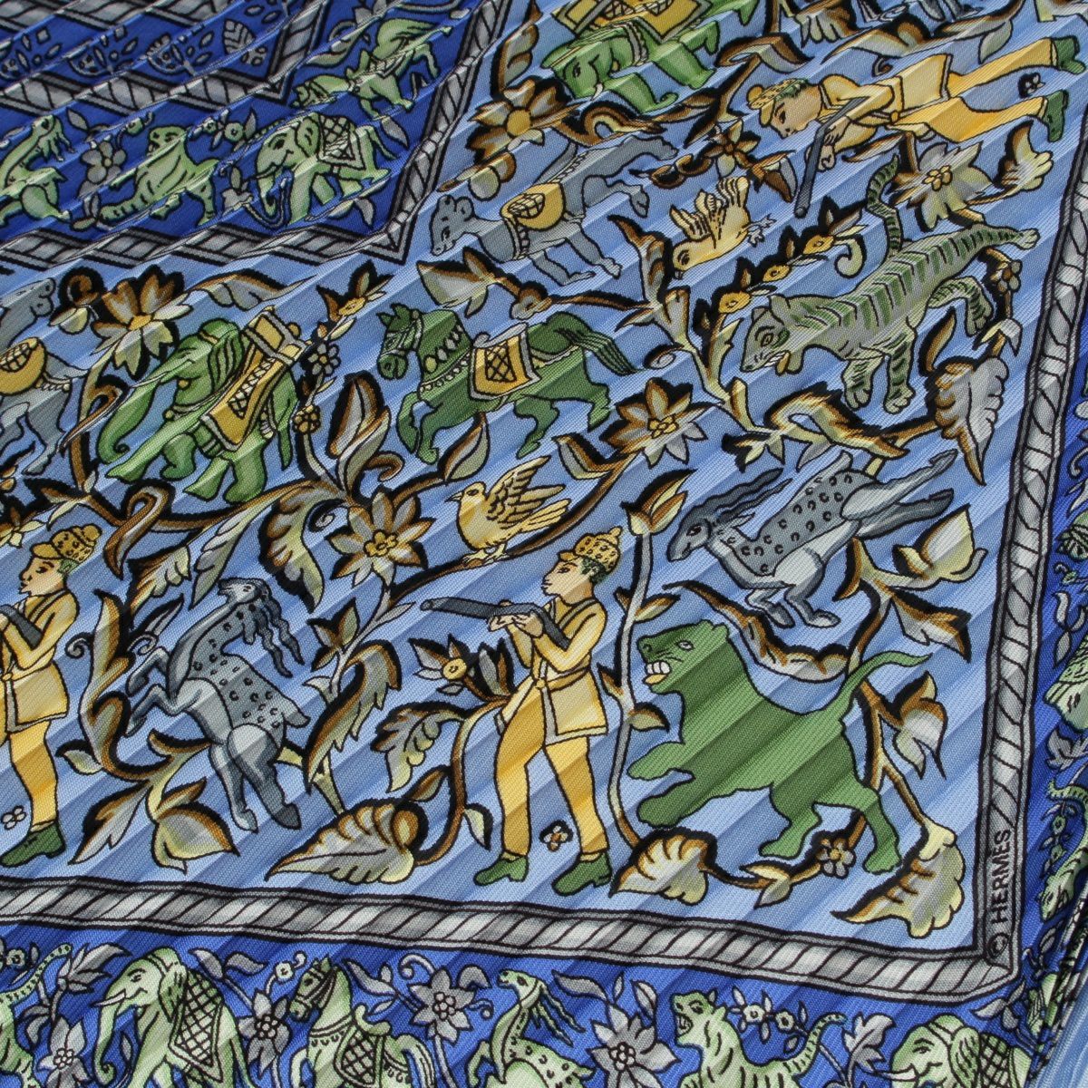 他の画像を見る HERMES エルメス プリーツカレ シルク CHASSE EN INDE インドの狩猟 スカーフ ブルー系 お気に入りに登録する 当店特別価格 ¥ 22,000 税込 円 20,000円