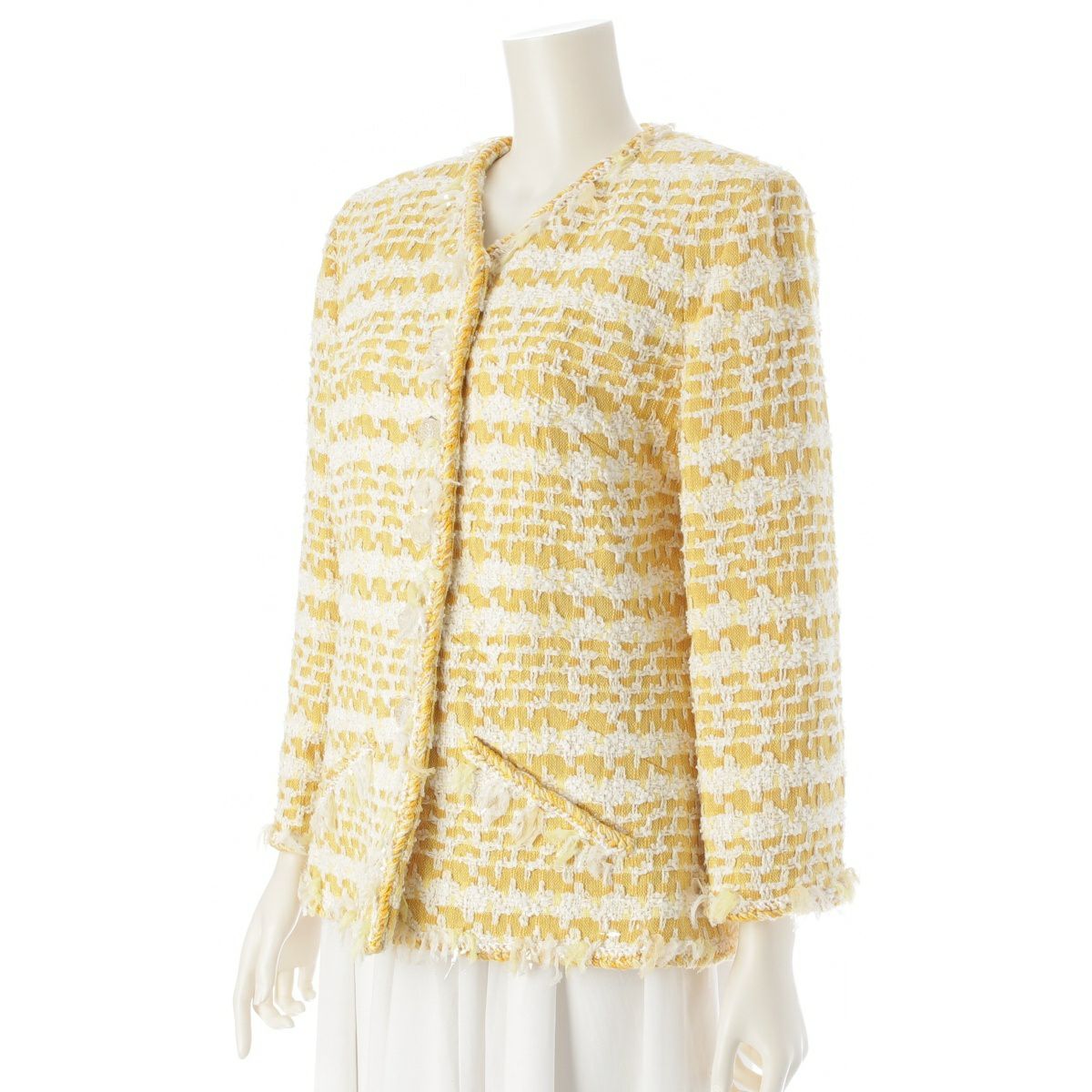 他の画像を見る CHANEL シャネル コットン ウール ココマーク クリアボタン ツイード ノーカラージャケット P58787 イエロー 42 在庫切れ お気に入りに登録する 当店特別価格 ¥ 209,000 税込 円 190,000円