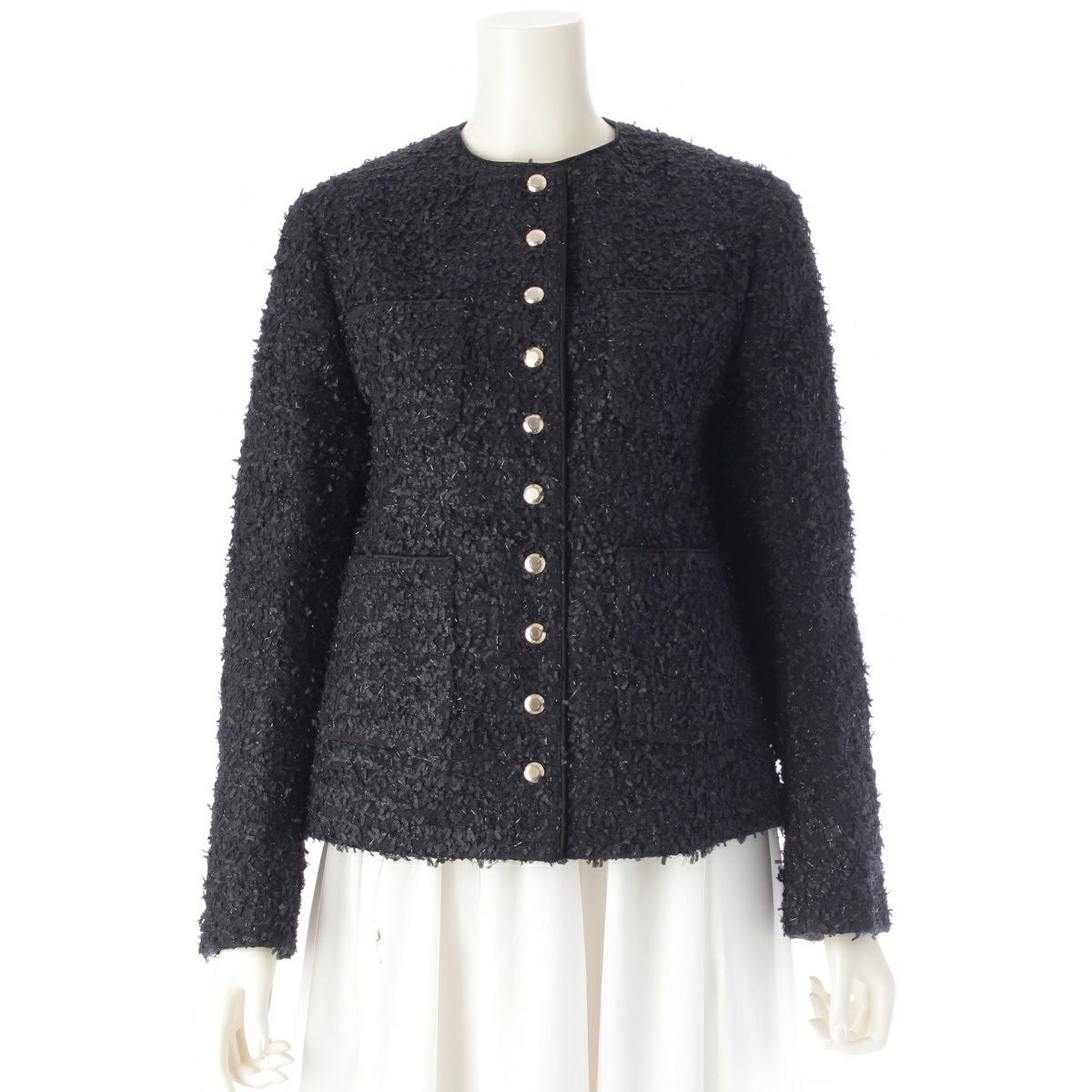 他の画像を見る CHANEL シャネル 24K ウール シルク ココボタン スパンコール ツイード シングル テーラードジャケット アウター P78196 ブラック ゴールド 38 在庫切れ お気に入りに登録する 当店特別価格 ¥ 330,000 税込 円 300,000円