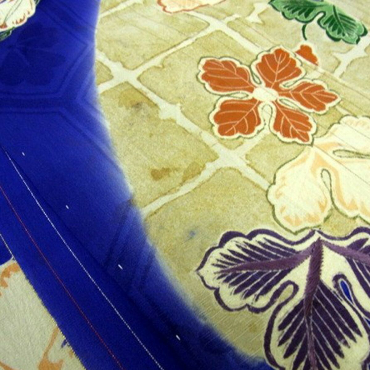 上前に画像のような目立つしみあり。ほか全体に細かいしみや色抜け、色移りが見られます。金コマ刺繍のほつれが数カ所見られます。胴裏が全体的に黄変しています。