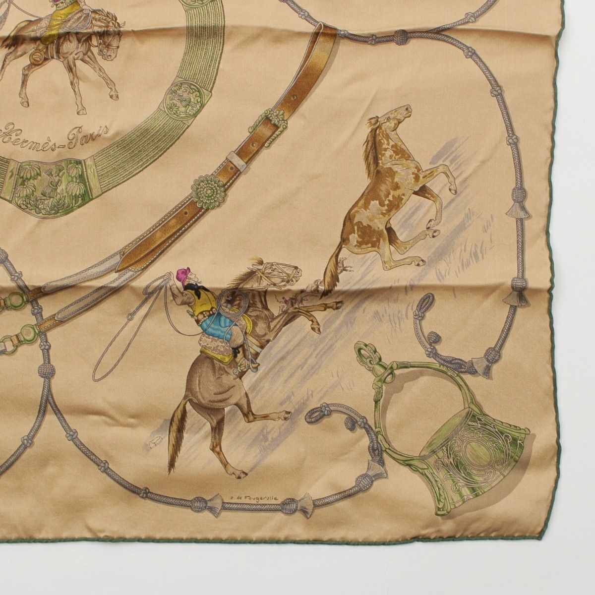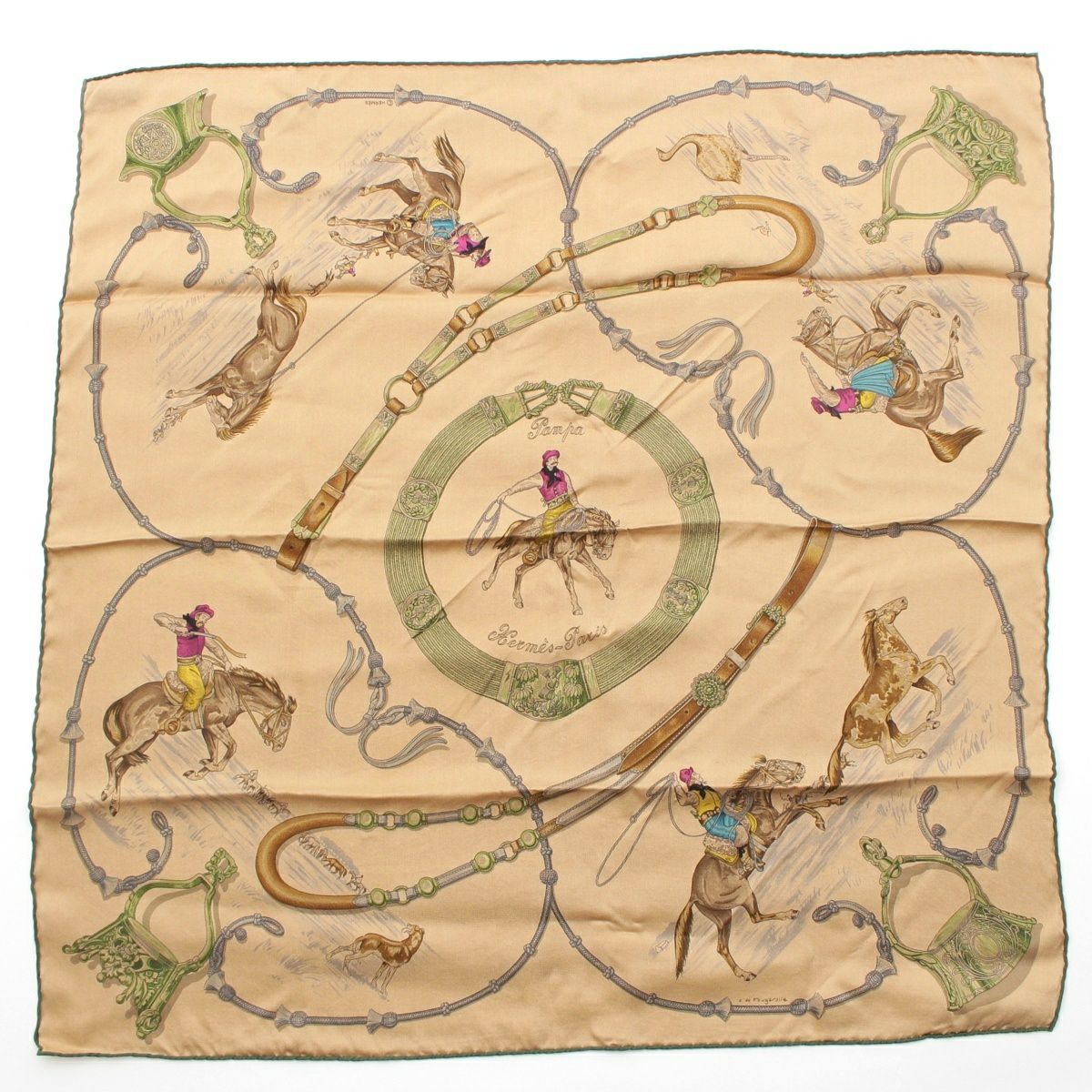 エルメス シルク カレ70 Pampa 大草原 スカーフ ブラウン×グリーン