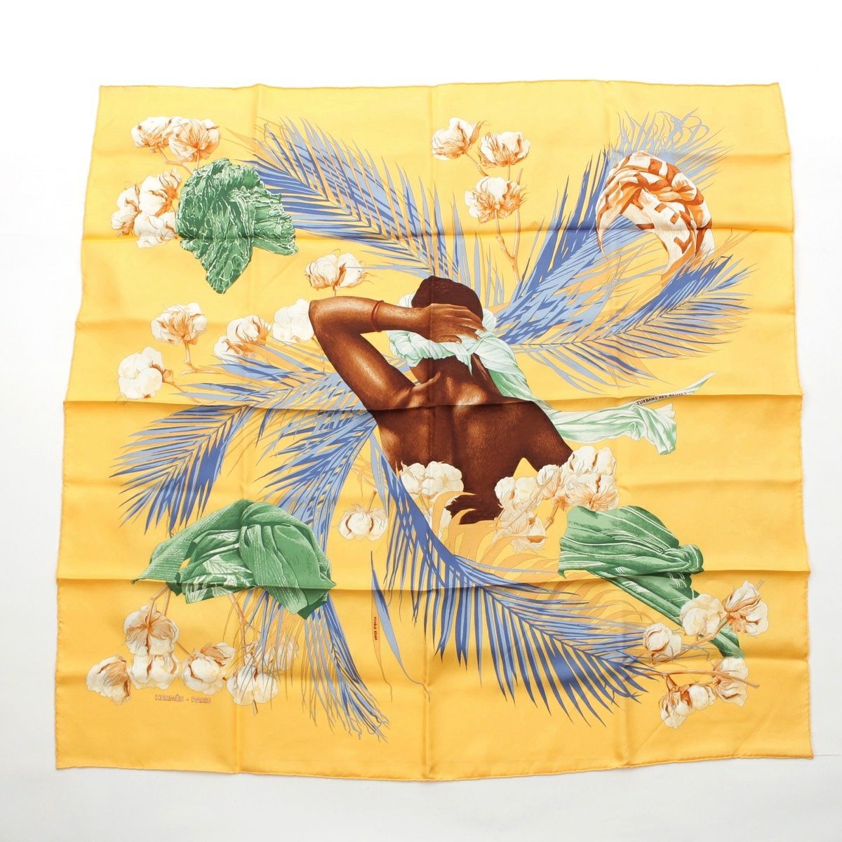 エルメス シルク カレ90 TURBANS DES REINES 王女のターバン スカーフ イエロー