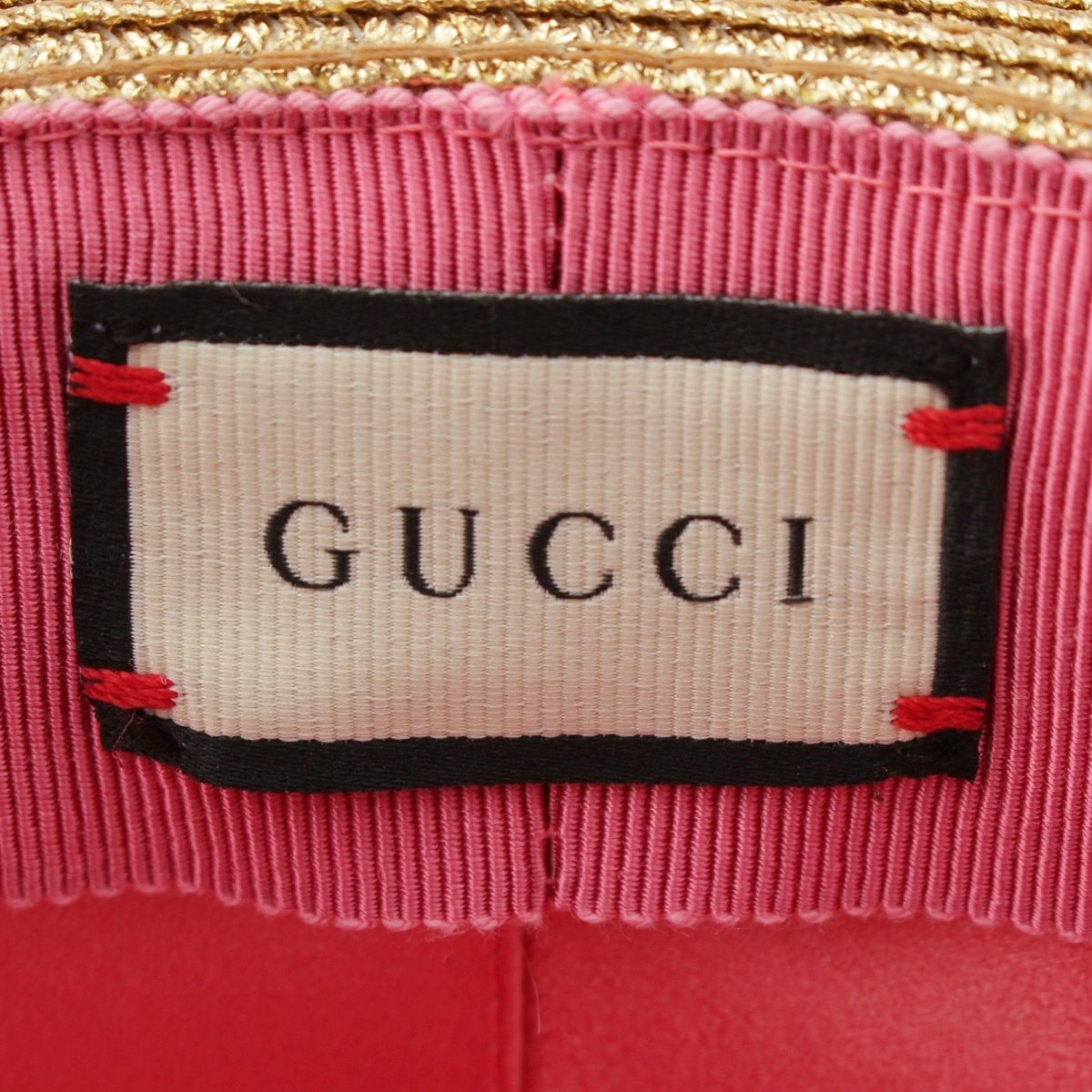 グッチ BEE ビー ファブリック パピエ ストロー ハット 帽子 ゴールド S