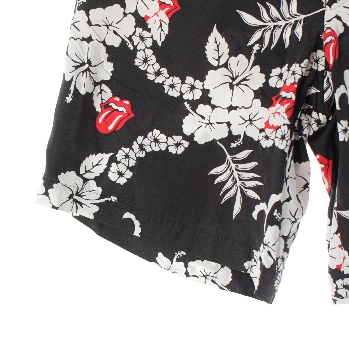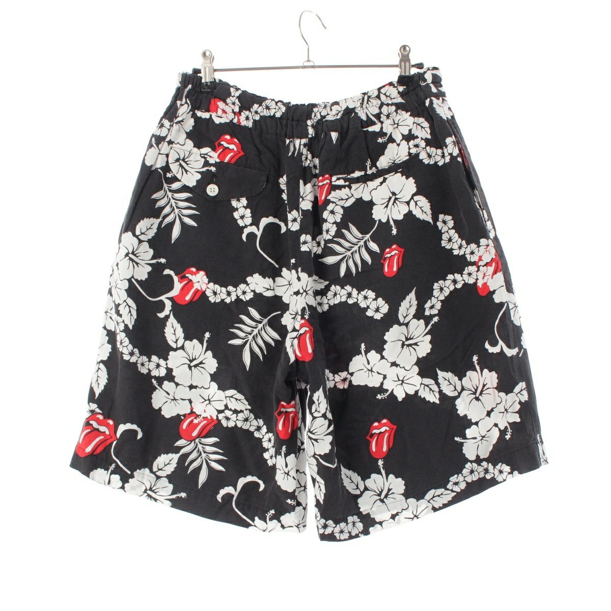 コムデギャルソンオムプリュス 06SS AD2005 ポリノジック ローリングストーンズ リップ&タン ハイビスカス ショートパンツ PQ-P073 ブラック ホワイト S