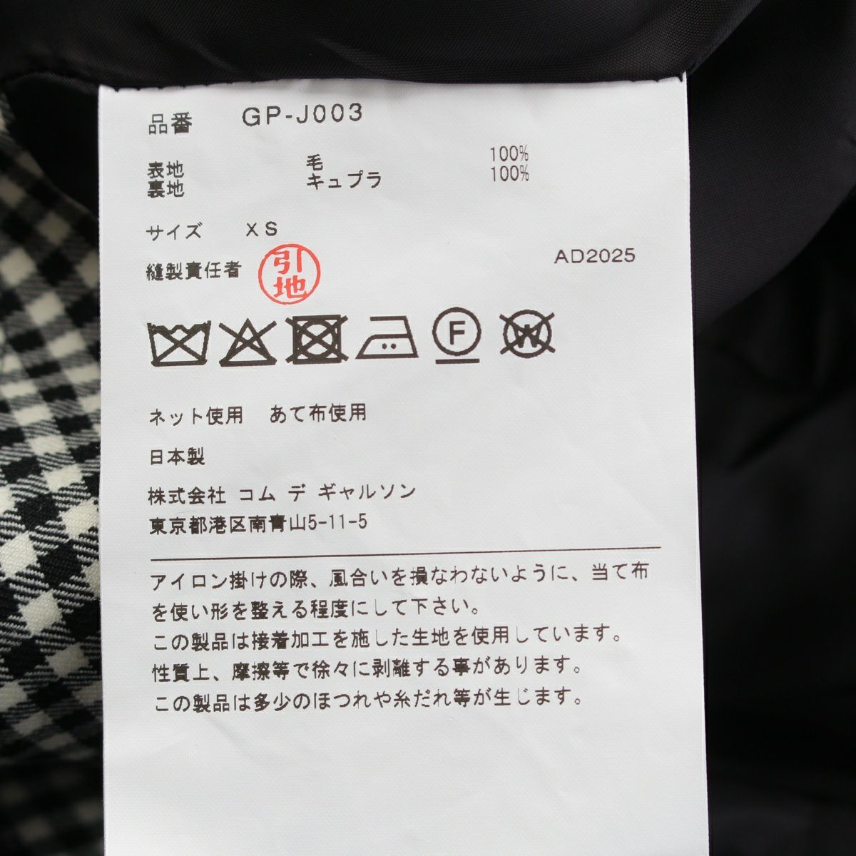 コムデギャルソン 25AW AD2025 ウール デザインカット テーラードジャケット GP-J003 ブラック×ホワイト XS