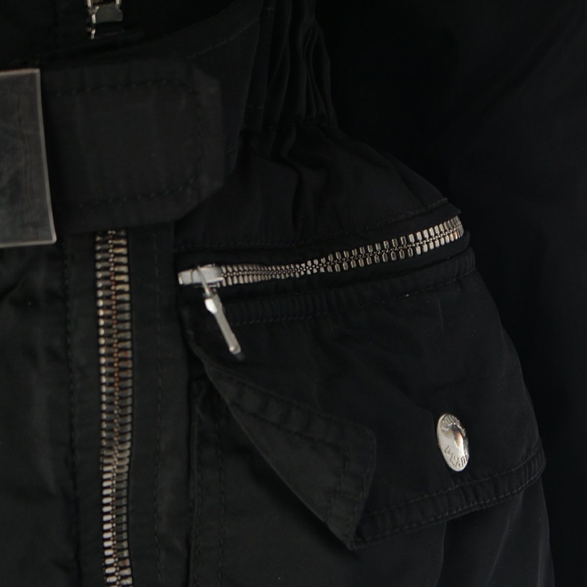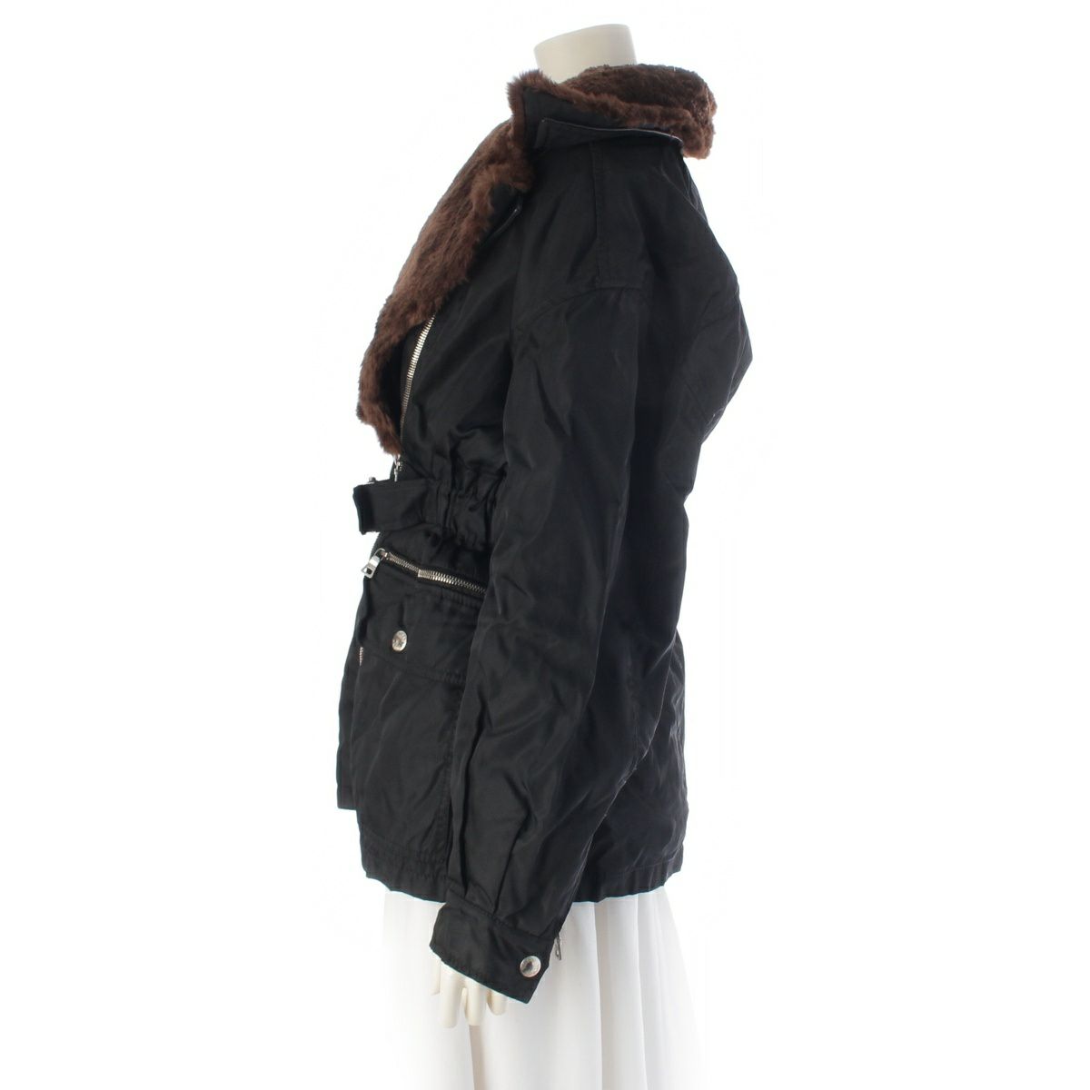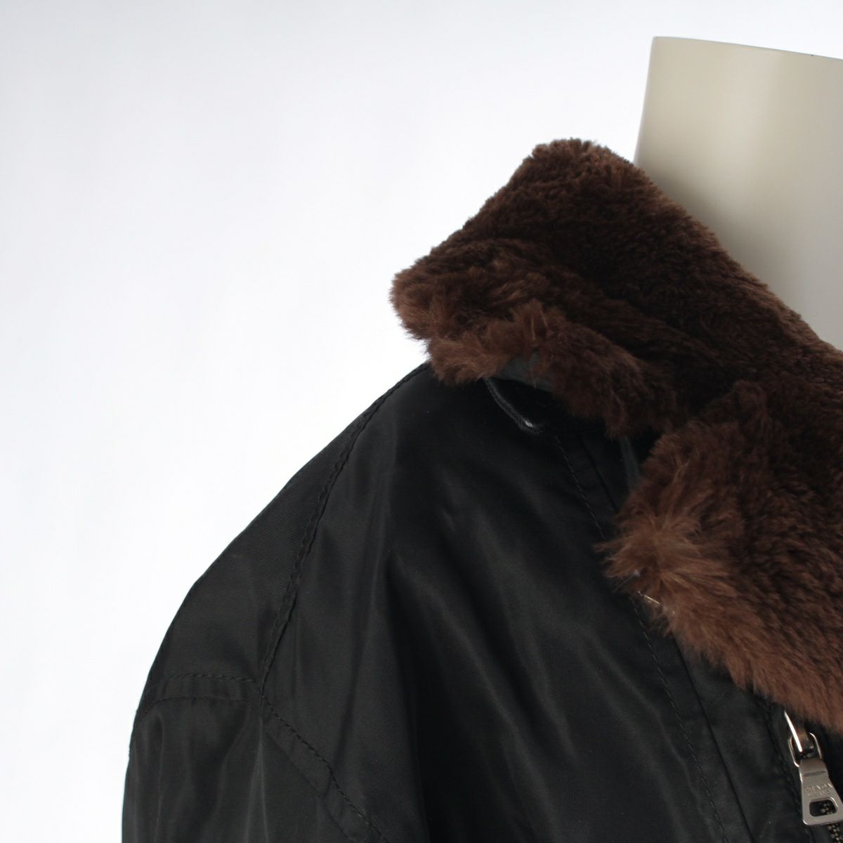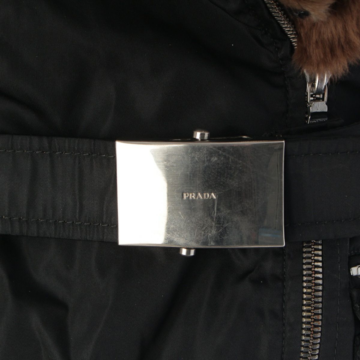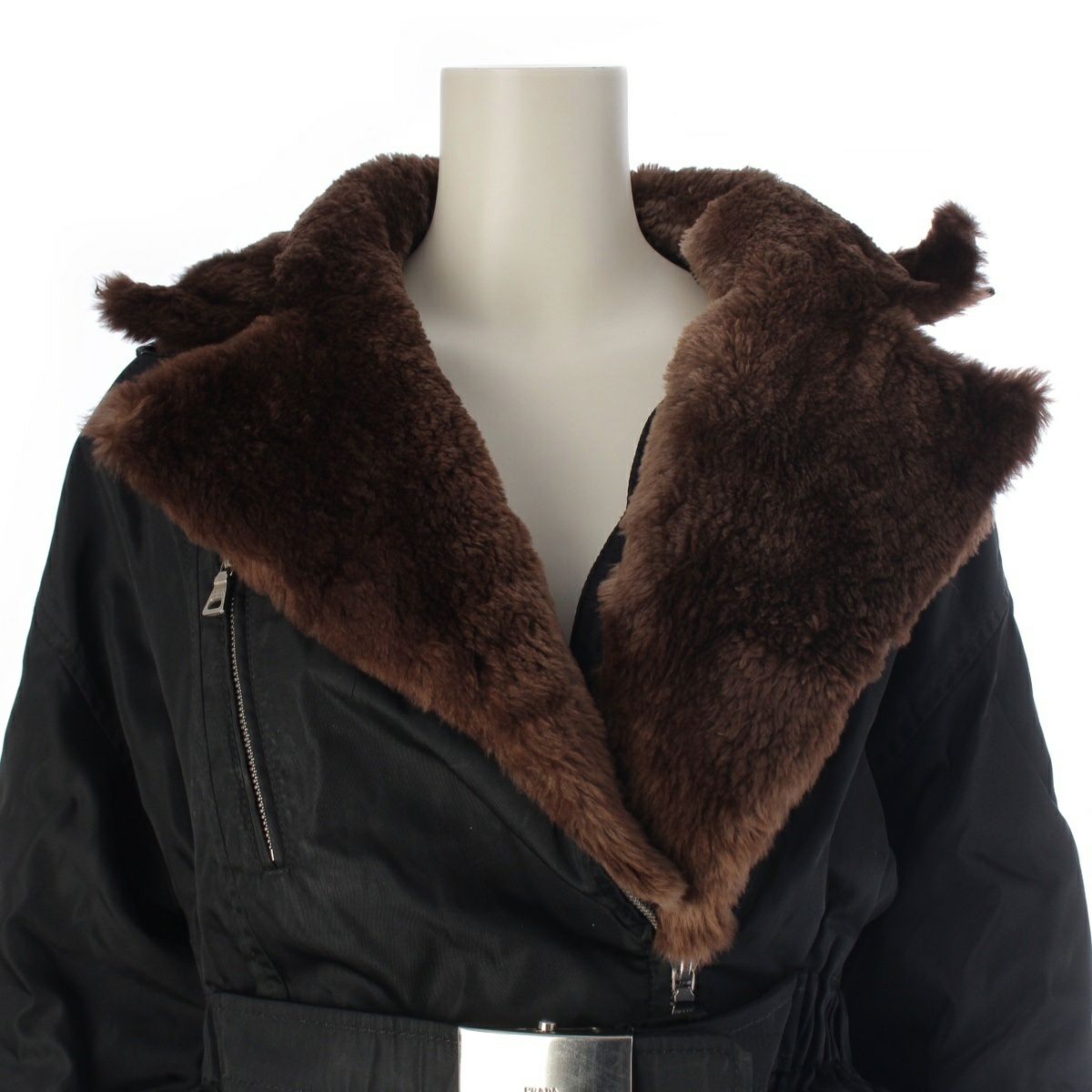 プラダ ベルト ロゴ ビーバーファー ジャケット 中綿ライナー ブラック S